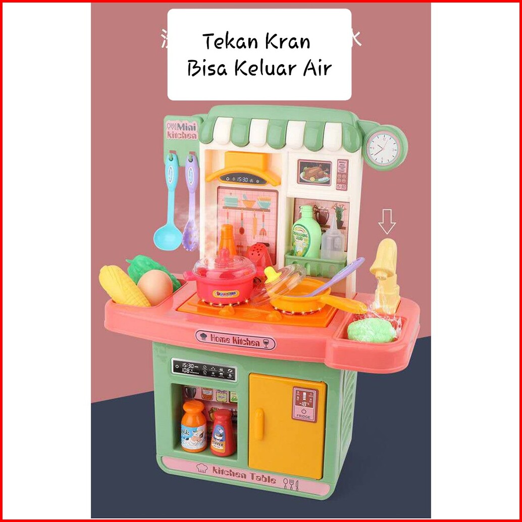 Semuajual Mainan Anak Kitchen Set Spray Mist Mini 33pcs Mainan Masak Kompor Bisa Keluar Uap