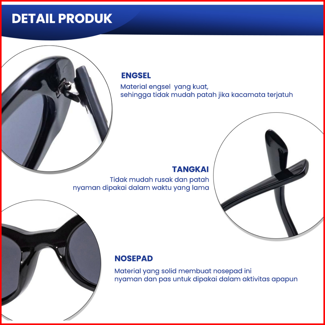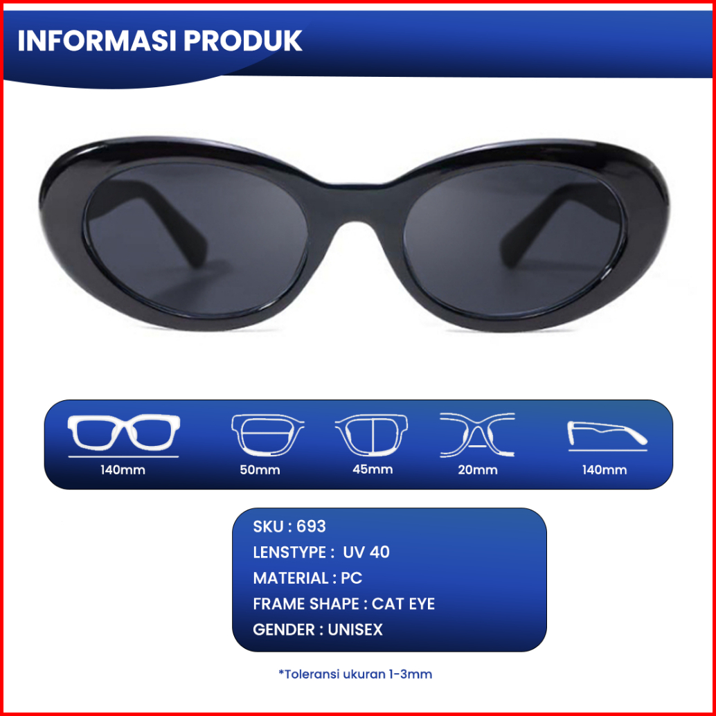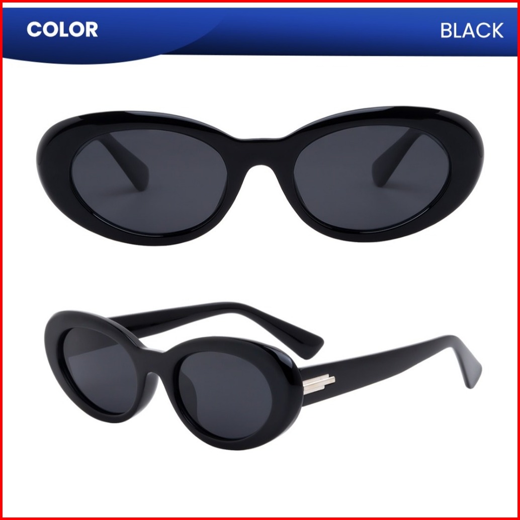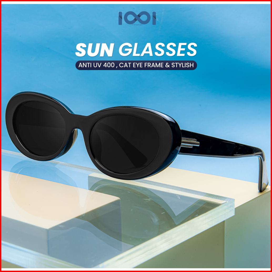 Iooi Eyewear - Kacamata Oval Cat Eye Hitam Sunglasses Vintage Anti Uv Pria Wanita 693