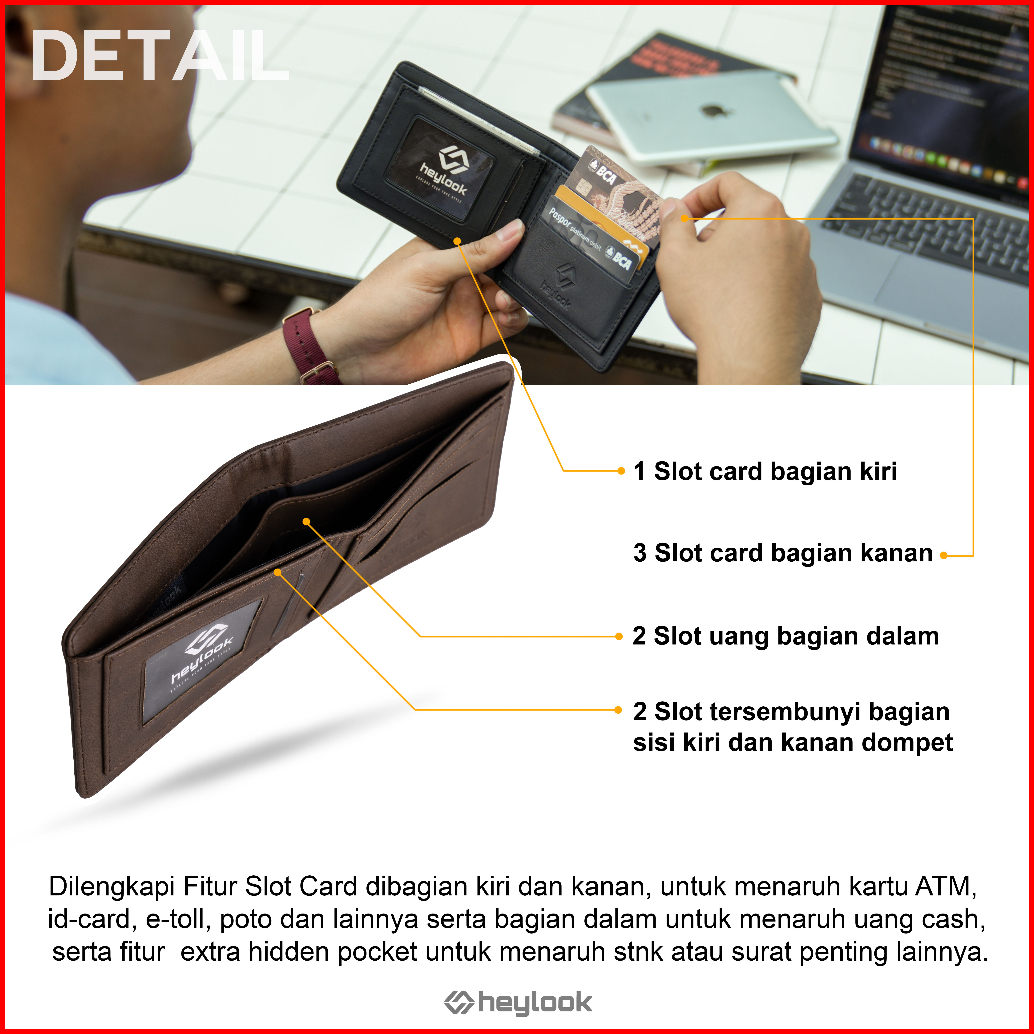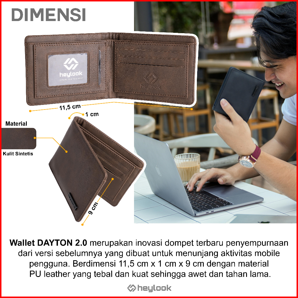 Heylook - Dompet Pria Pendek Dayton 2.0 Dompet Kulit Lipat Premium Dompet Kartu Id Card Distro Terbaru