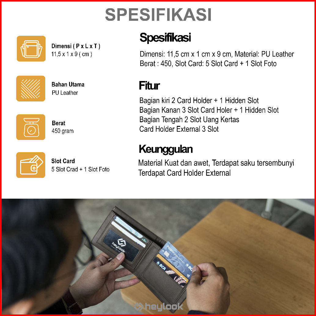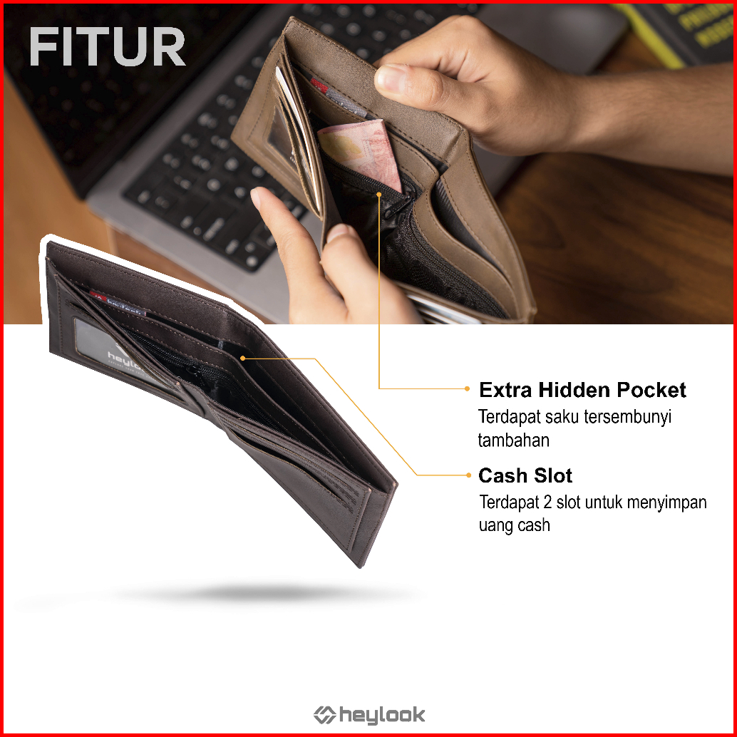 Heylook - Dompet Pria Pendek Hampton 2.0 Dompet Kulit Pendek Lipat Premium Distro