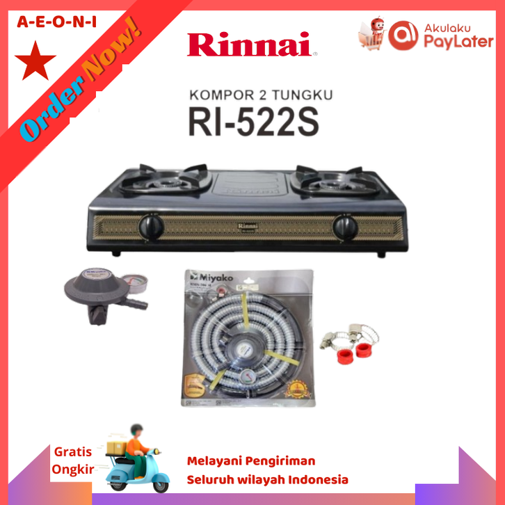 Rinnai RI-522S Kompor Gas 2 Tungku Teflon ri 522 s rinai ri522s garansi resmi