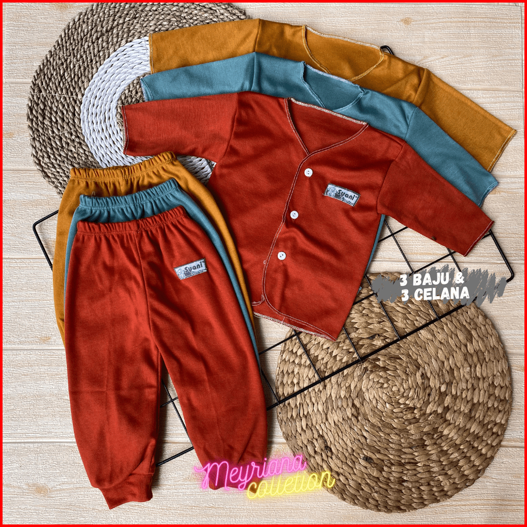 Promo - 6 Pcs Baju Bayi Lengan Panjang Dan Celana Panjang Bayi Baru Lahir Seri Warna Autumn Meyriana Collection