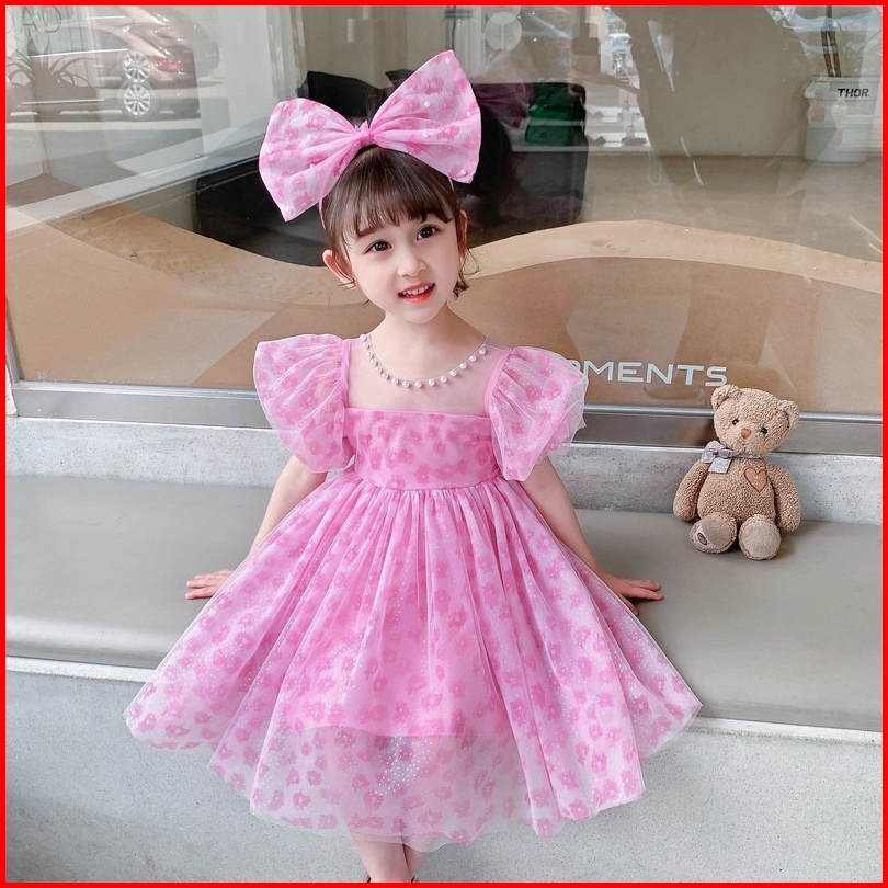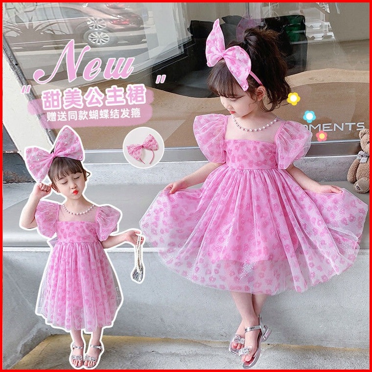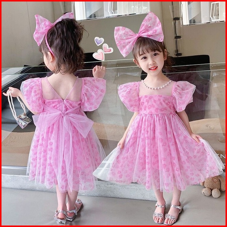 Princess Kesli 2-11 Tahun Dress Pesta Magenta Bando Anak Perempuan Gaun Pita Party Ulang Tahun