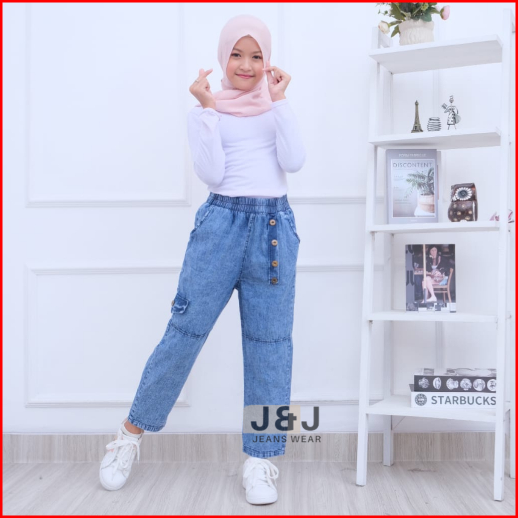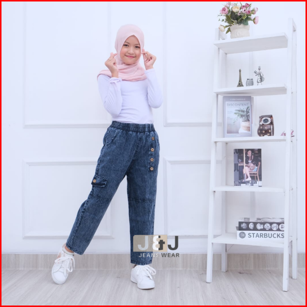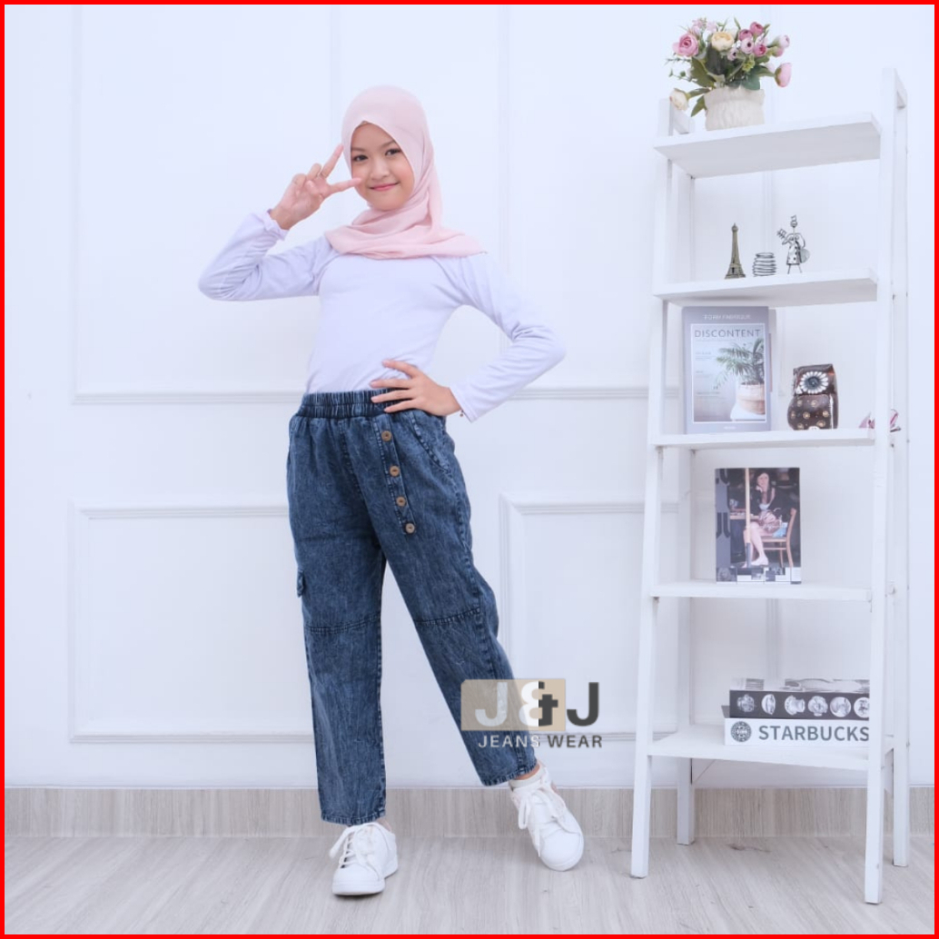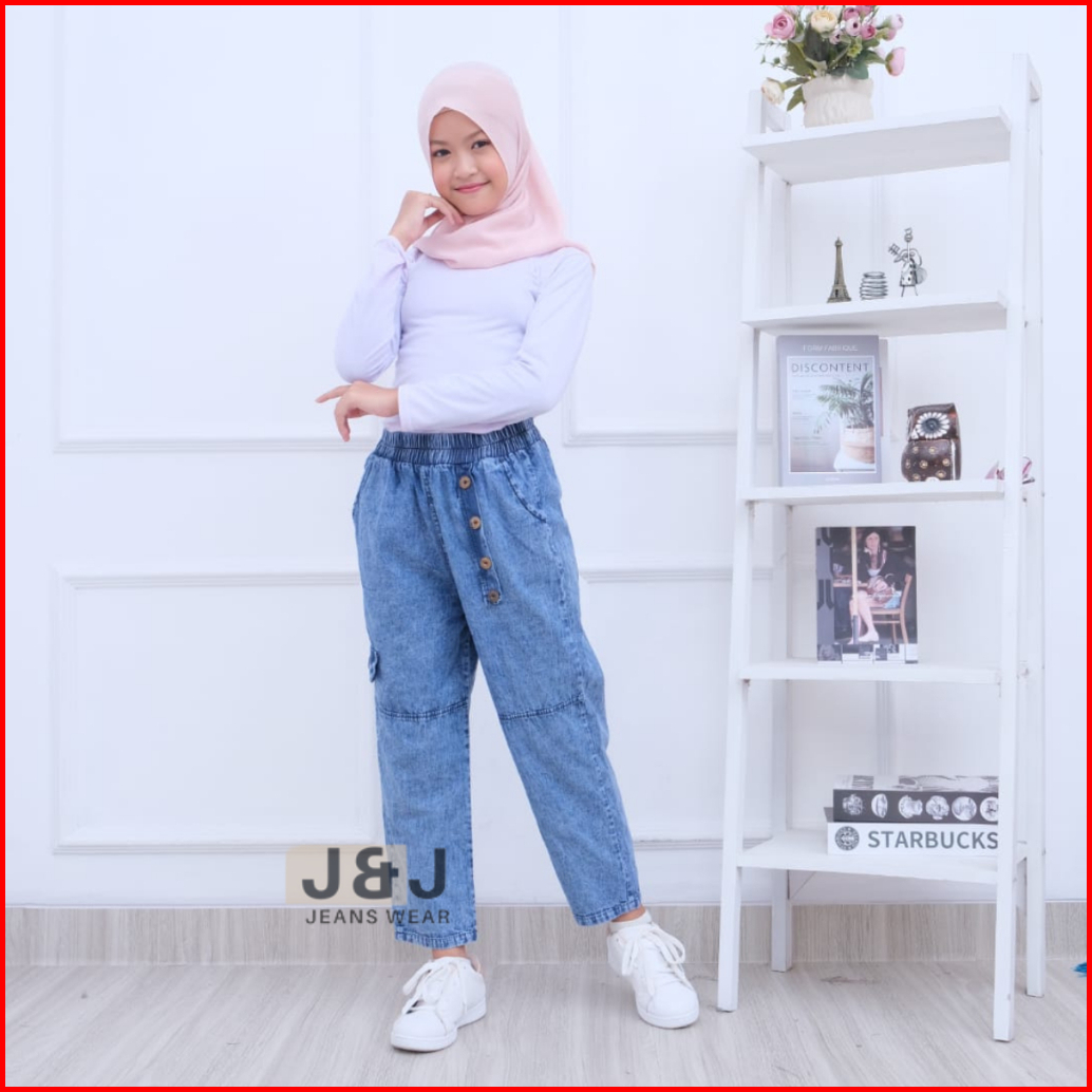Celana Jeans Anak Perempuan 7-15 Tahun I Celana Jeans Panjang Anak Pinggang Karet