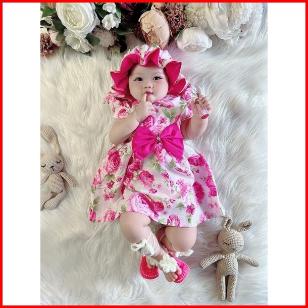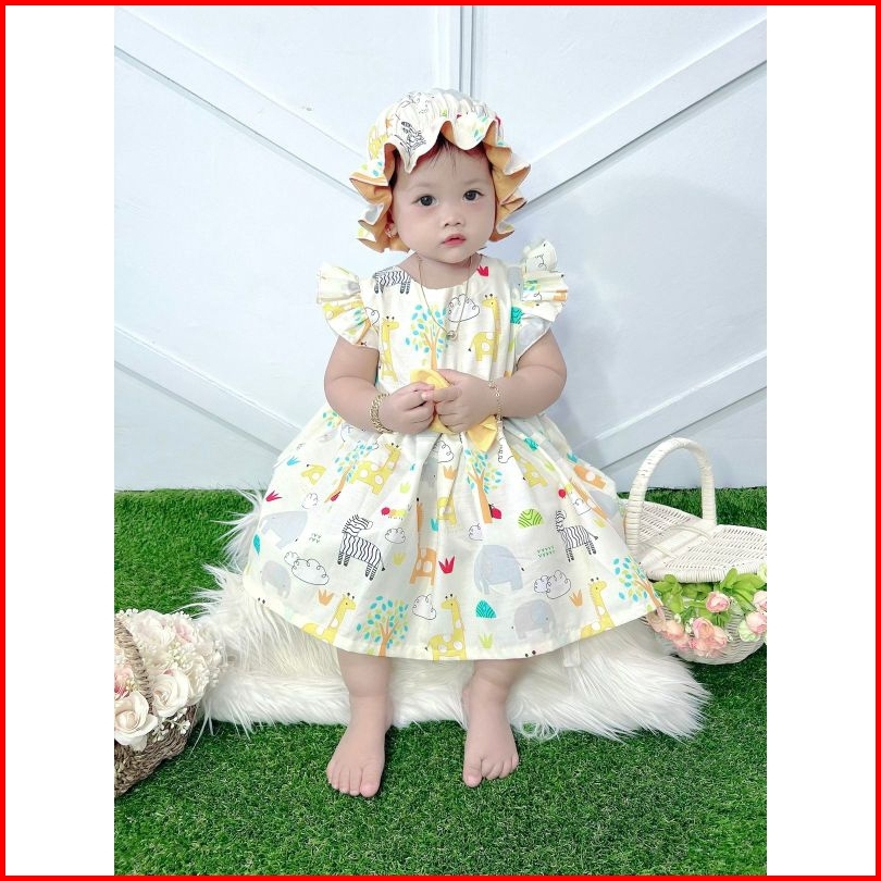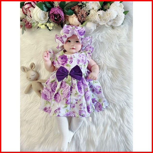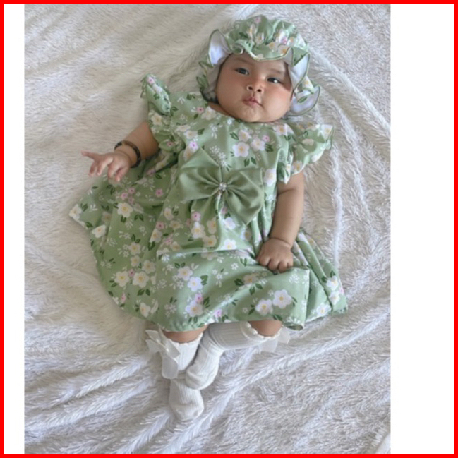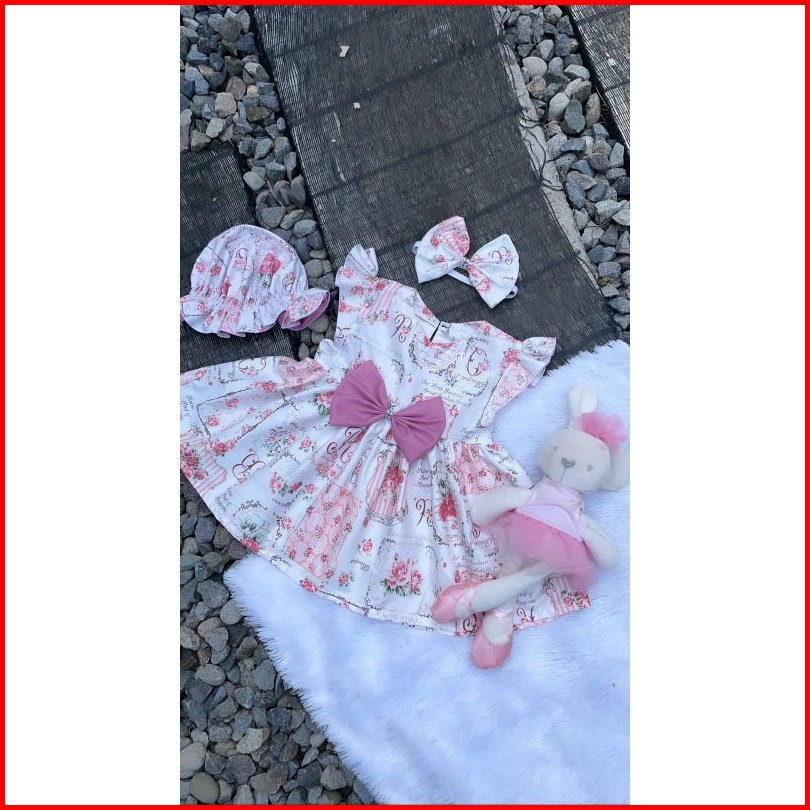 Dress Ruffle Set Topi Bandana Dress Bayi Dress Anak