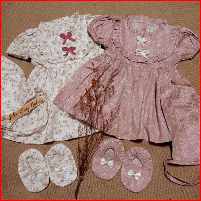 Dress Bayi 0 6 12 Bulan Set Sepatu Bandana Bonnet Setelan Baju Bayi Perempuan 100 Katun Sni Pakaian Anak Cewek