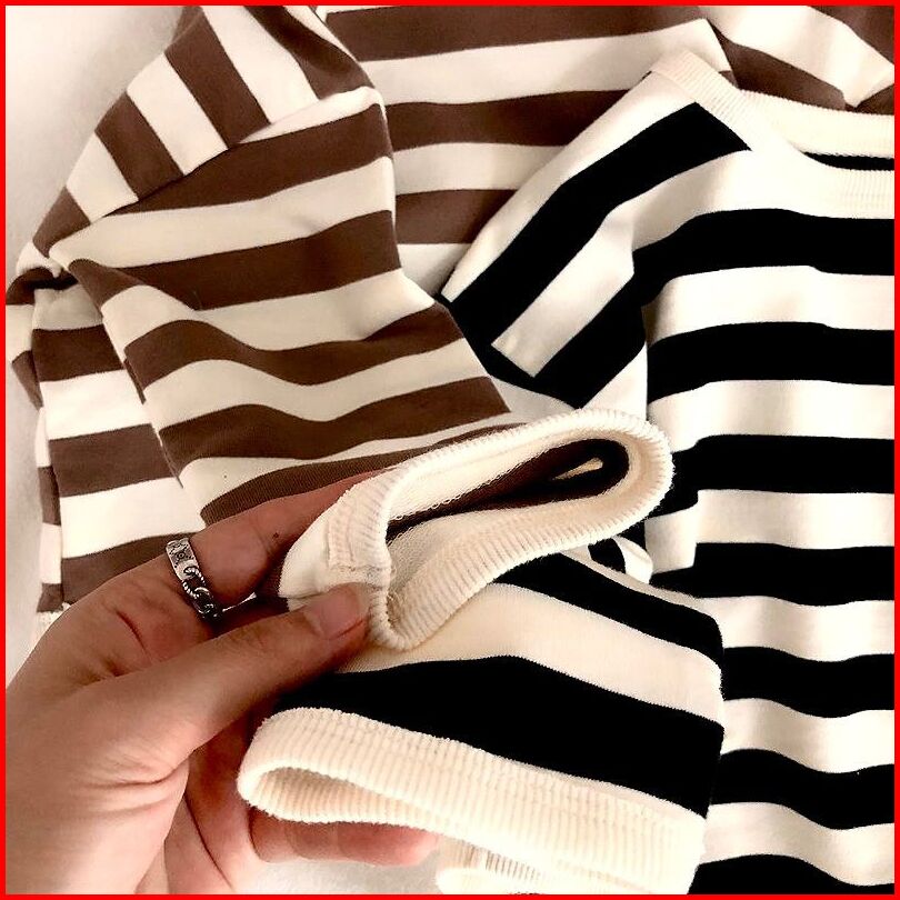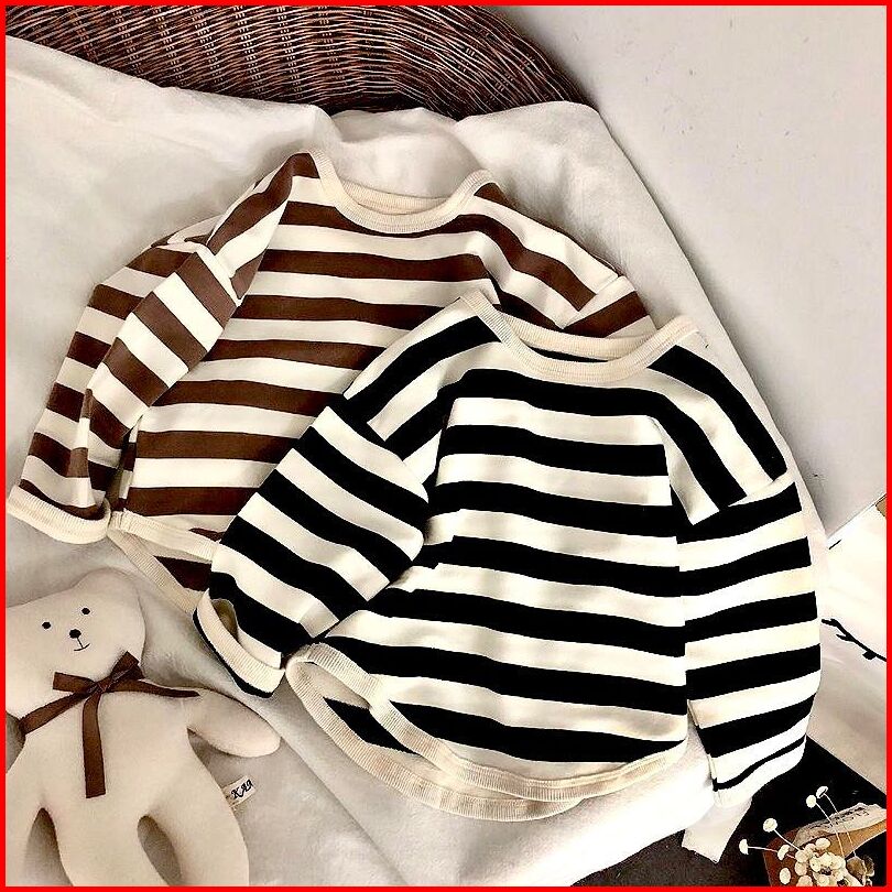 Mazakids Baju Atasan Anak Laki-laki Perempuan Garis Coklat Hitam Keren Sweater Anak 6 Bulan - 5 Tahun
