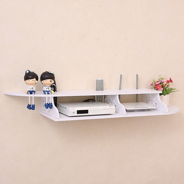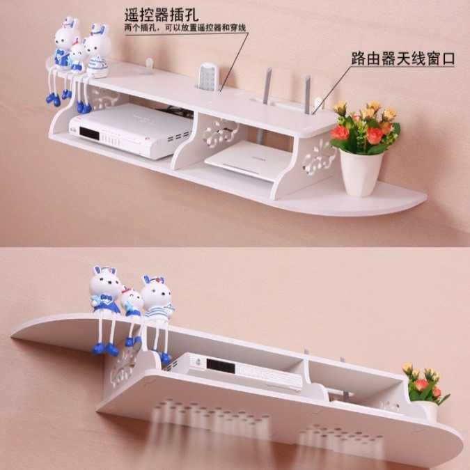 Ambalan Rak Dinding DVD Router WIFI Remote 2 Layer Tempel Tembok Desain Minimalis Aesthetic Kuat Mudah Dipasang