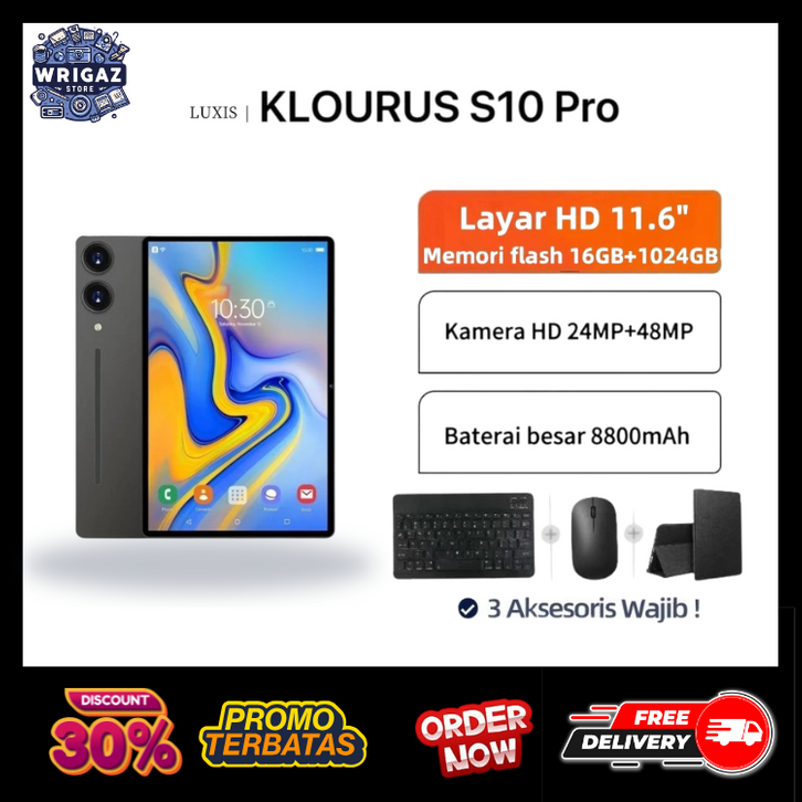 Tablet Murah 1 Jutaan KLOURUS S10 Pro (16GB + 1024GB) IPS 11.6" untuk Belajar,Gaming, Kerja & Hiburan | 5G Dual SIM wifi