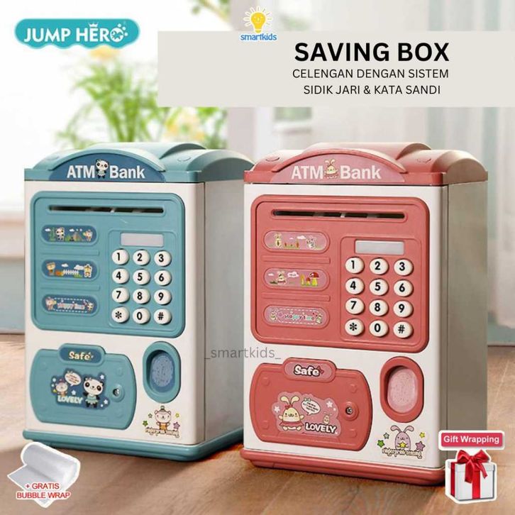 Mainan Magic Tabungan Celengan Mesin ATM Bank Otomatis / Kata Sandi Password Fingerprint Sidik Jari Brankas / Piggy