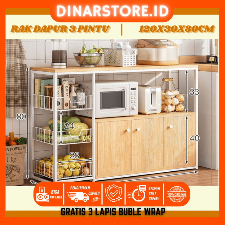 LLB Rak Dapur Set 120x30x80cm Rak Dapur Susun Serbaguna Minimalis Estetik Rak Oven Rak Microwave Meja Dapur Lemari Dapur