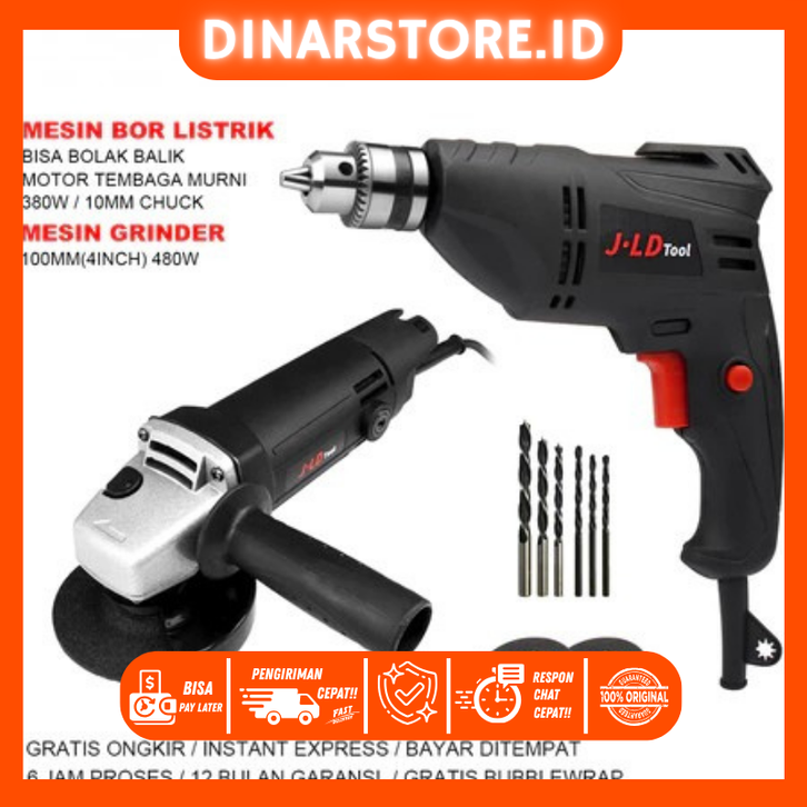 JLD Mesin Bor listrik 10mm J10-3 + JLD Gerinda 4Inch J9954C [PAKET 2ITEM] Electric Drill 10mm mesin gerinda tangan murah
