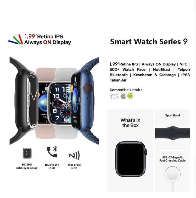 Smartwatch Xiaomi Original i9 PRO MAX S 1.99" Smartwatch Display WhatsApp Quick Reply - Jam Tangan Pria Terbaik 2025