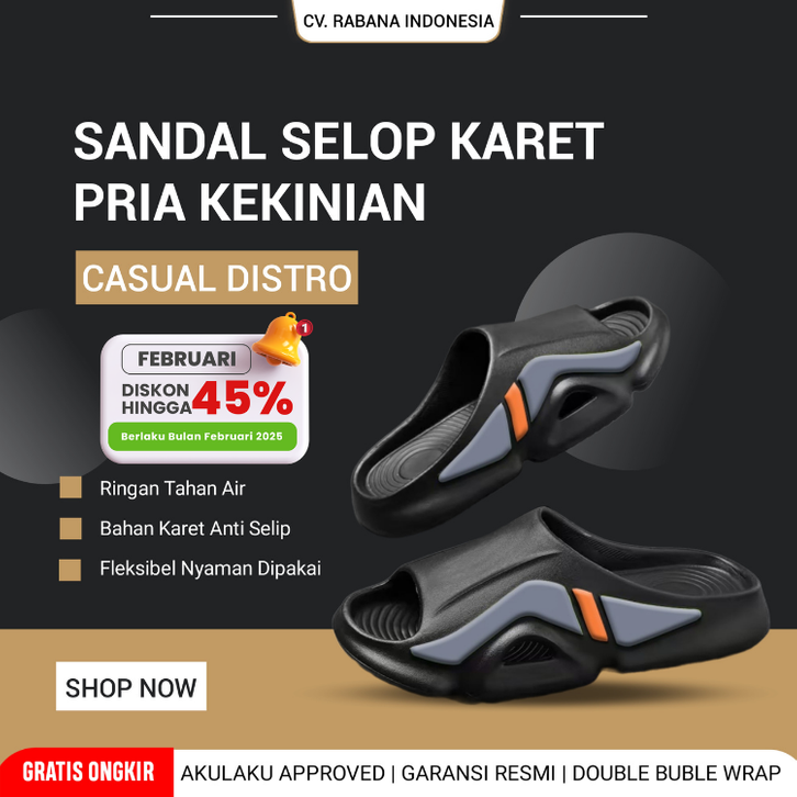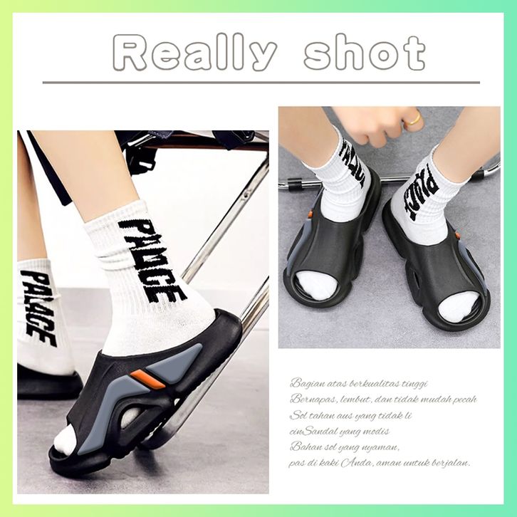 Sandal Slop Pria Dewasa Kekinian Keren Outdor Olahraga Sendal Karet Cowok Casual Distro Empuk Tebal Anti Slip