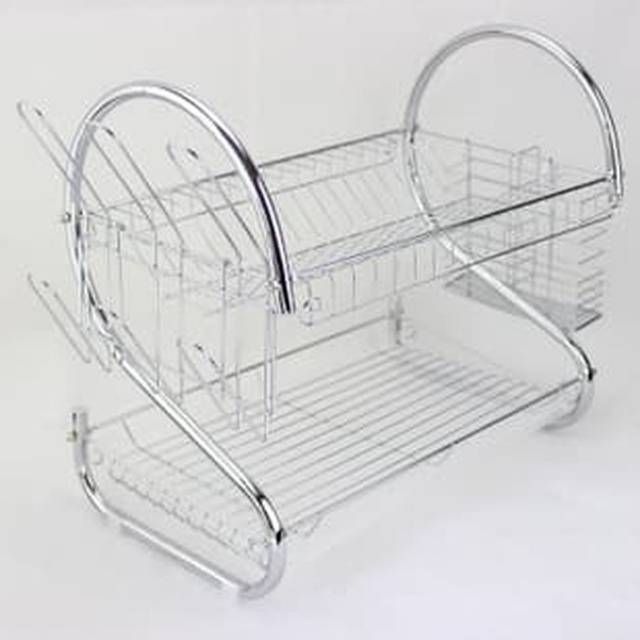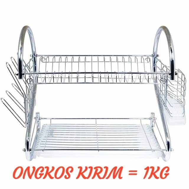 Rak Piring Stainless Minimalis 2 Tingkat Besi 2 Layer Dish Drainer