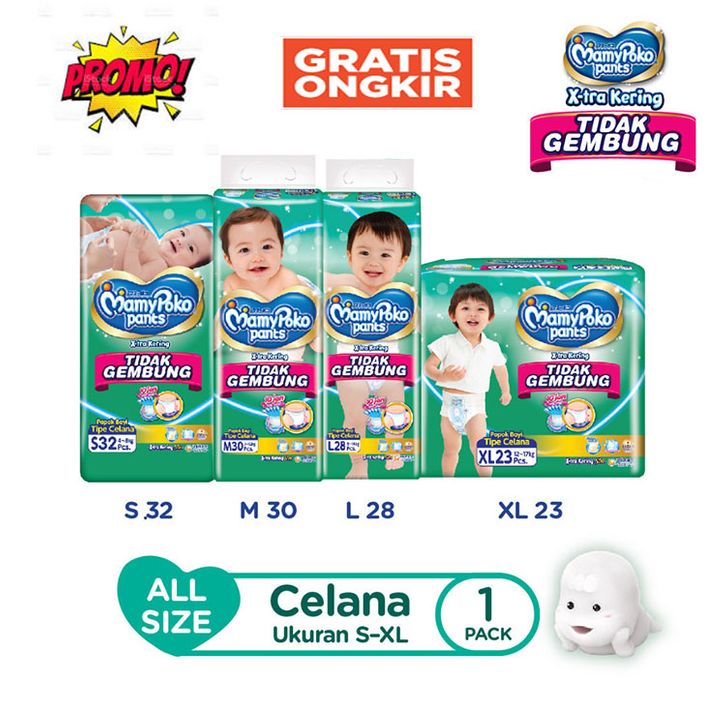 MamyPoko Pants Xtra Kering S32 M30 L28 XL23 Popok Celana Slim Tidak Gembung
