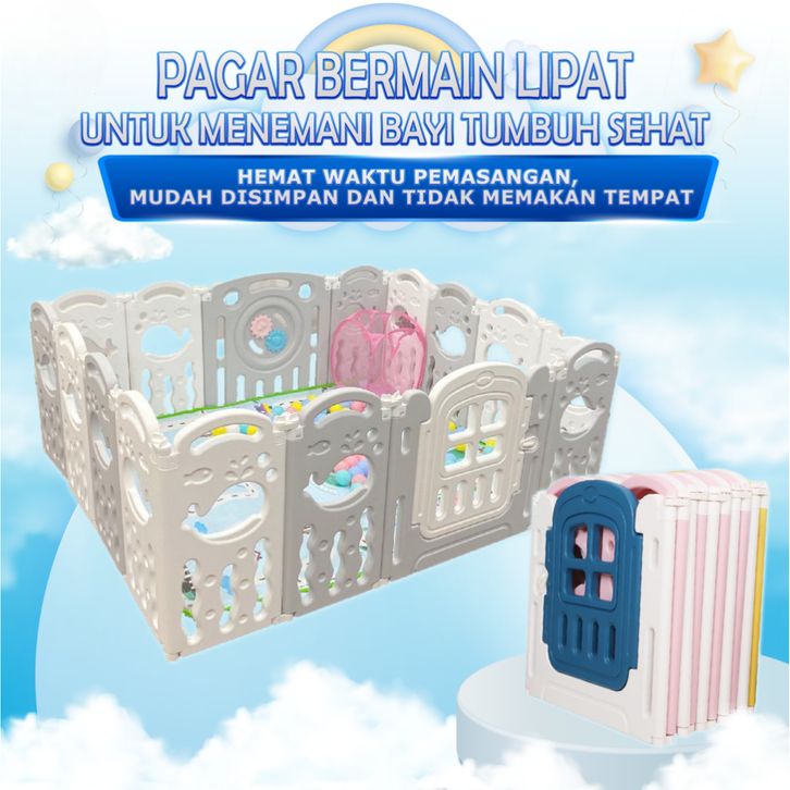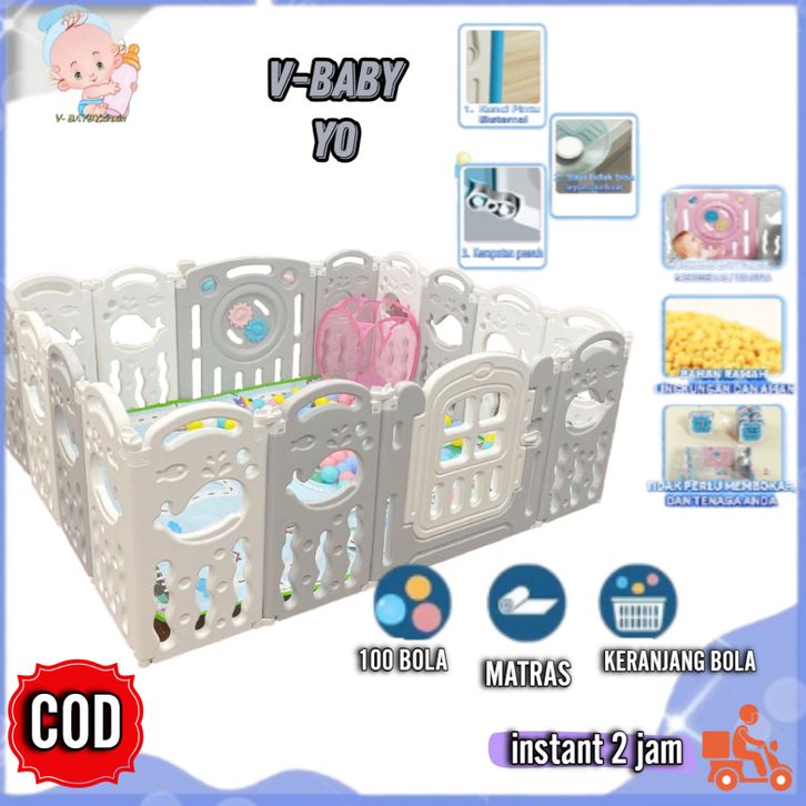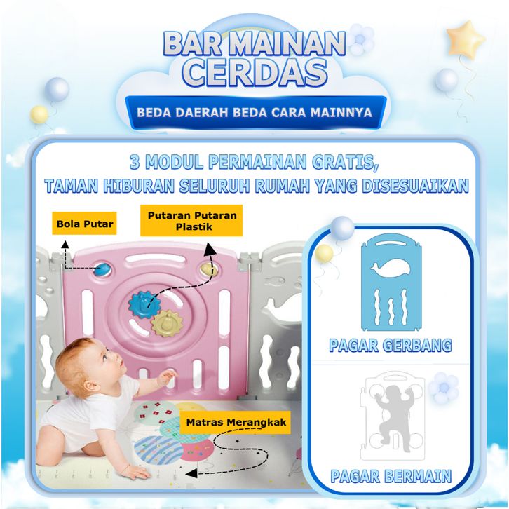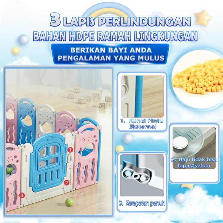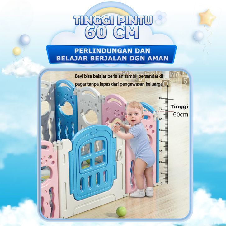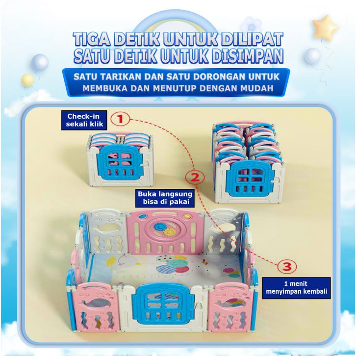 V-Baby Pagar Anak Pagar Bayi Babyfence Import Kokoh Bisa Dilipat Motif Bulan Bintang 6 Ukuran,T Gratis 100Pcs Bola,Matr