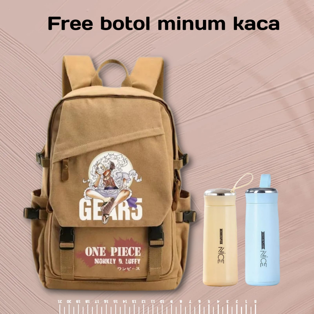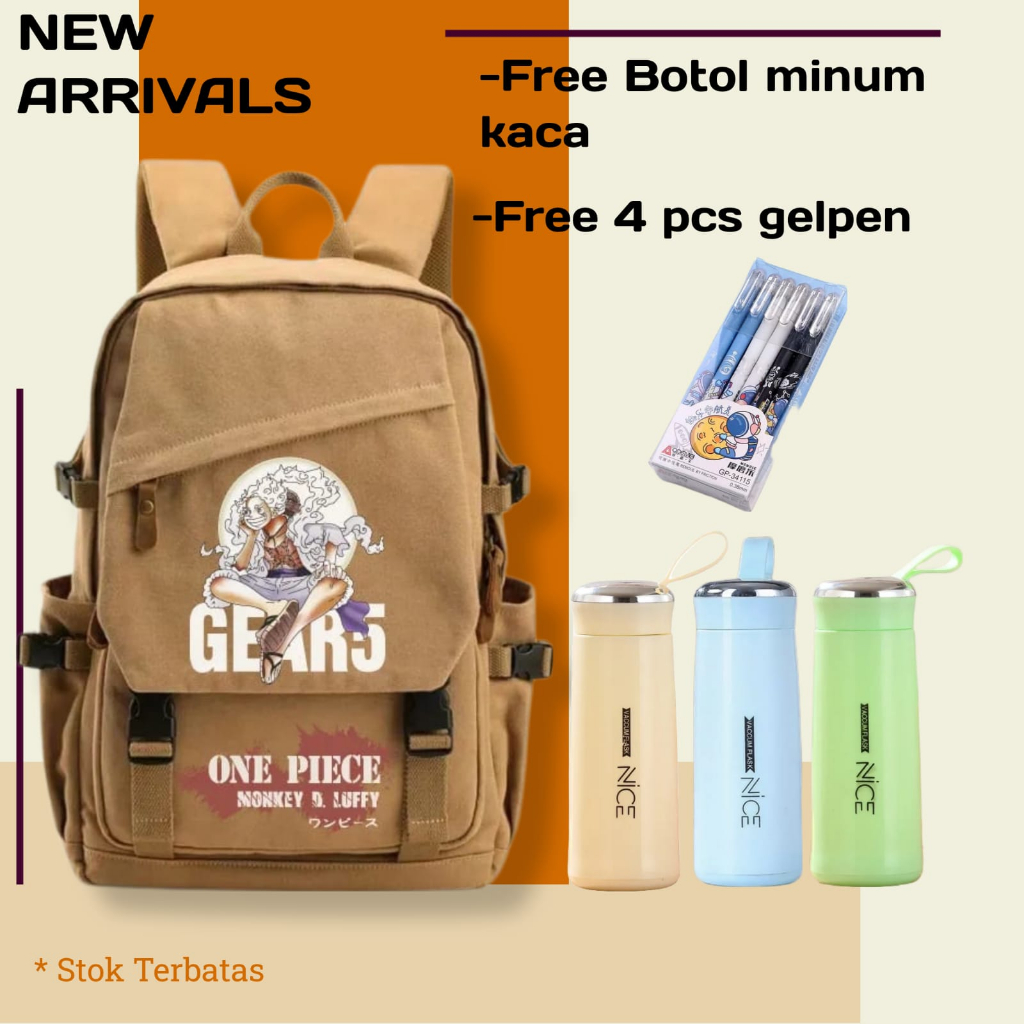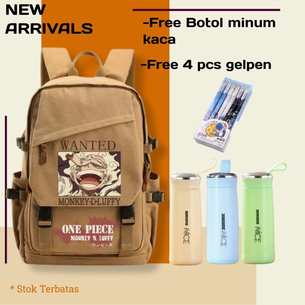 Bagpack One Piece model terbaru Strawhat After Time Skip Series Tas Ransel Sekolah Unisex Keren ADA GRATIS BOTOL+PULPEN