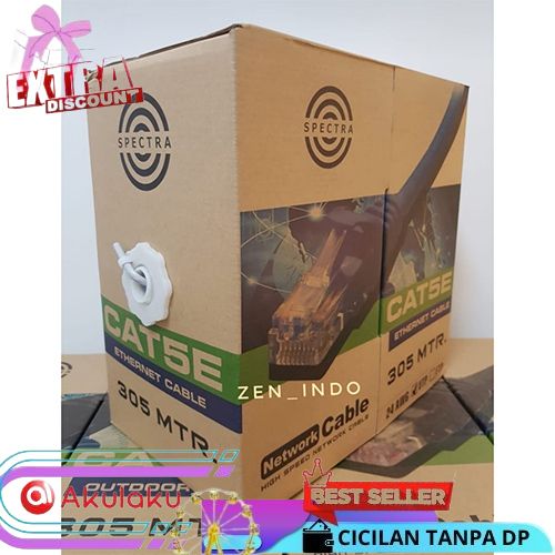 Tanpa DP KABEL LAN INDOOR UTP CAT5E CAT 5E PANJANG 305 M ABU ABU SPECTRA INTERLUC