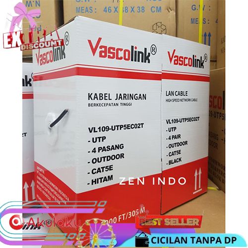 Tanpa DP KABEL LAN OUTDOOR UTP CAT5E 305 METER VASCOLINK WARNA HITAM BLACK