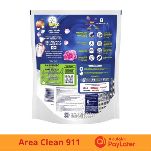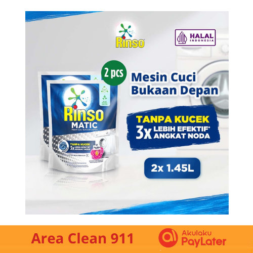 [ 2 PACK ] Detergent Rinso Cair Konsentrat Matic Mesin Cuci Bukaan Depan 1.45 L x2
