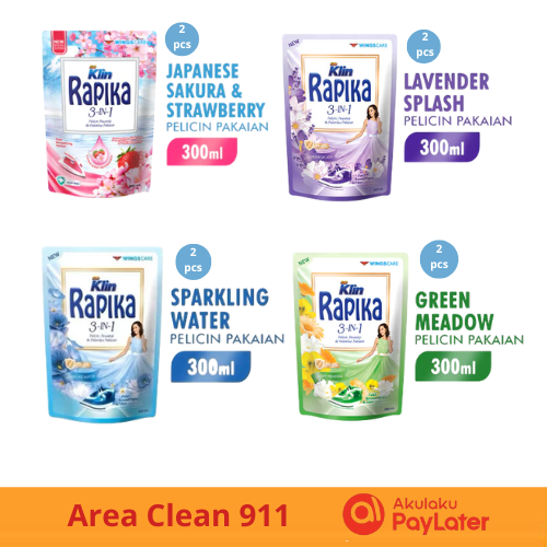 Paket 8 Pcs Pelicin Pewangi Pakaian Rapika Varian Sakura&Strawberry 2 + Lavender 2 + Sparkling 2 + Green Meadow 2 300ml