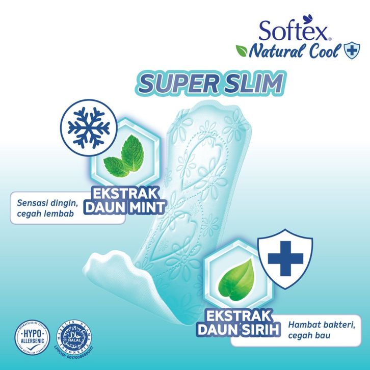 Softex Natural Cool + Super Slim Pantyliner Longer & Wider isi 28 pads