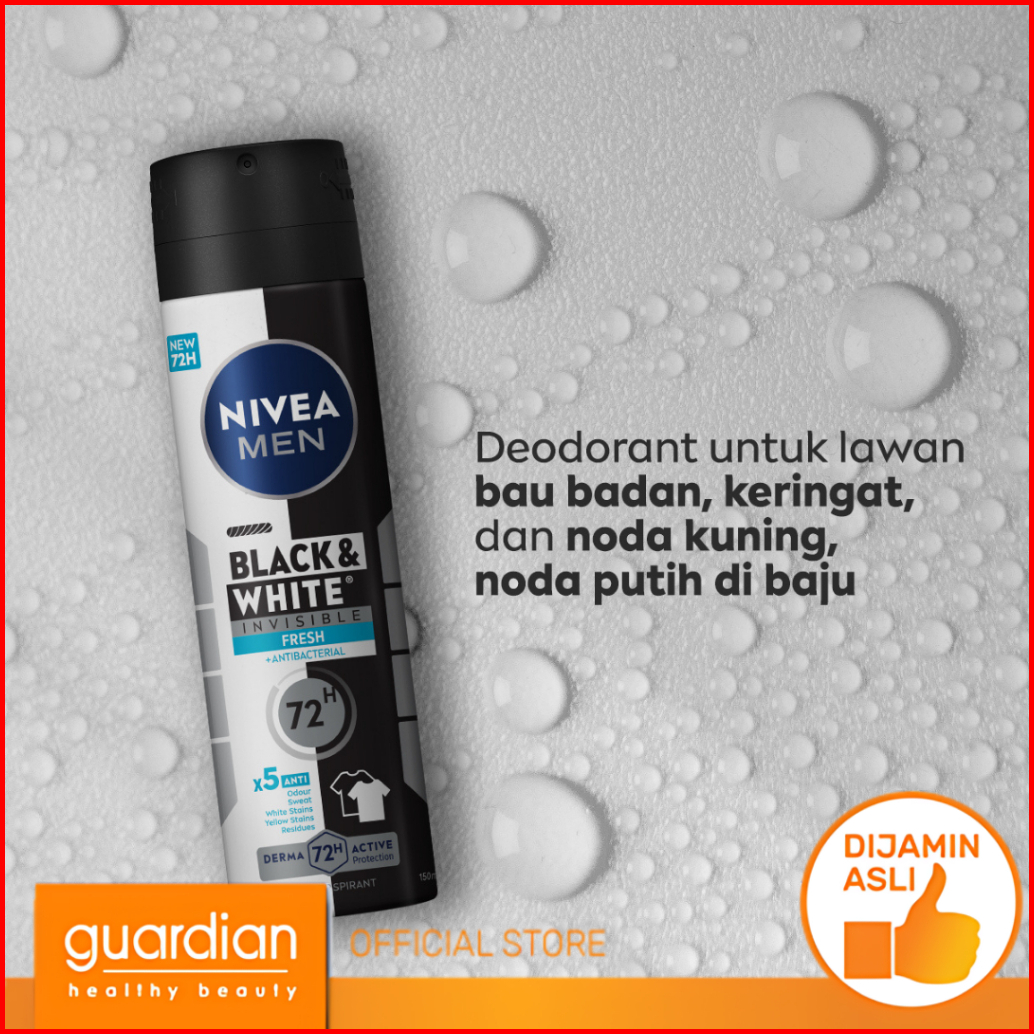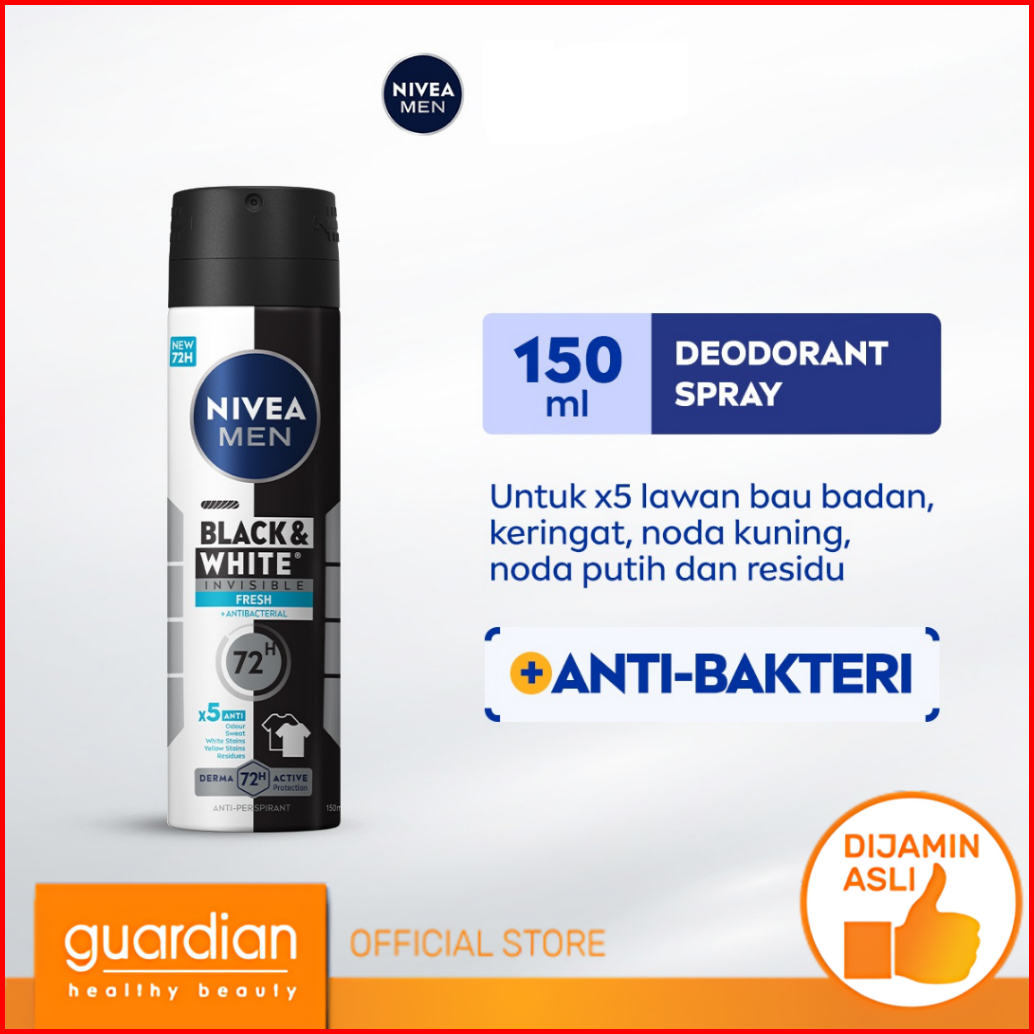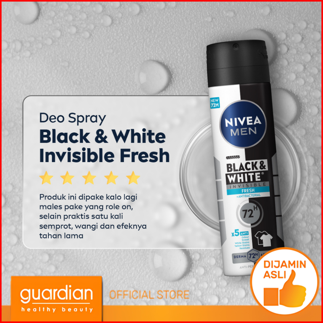 Nivea Men Deodorant Spray Black White Invisible Fresh - Deo Anti Noda Baju Wangi Segar 150ml