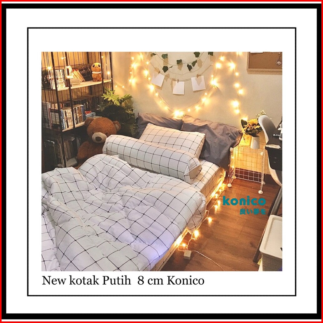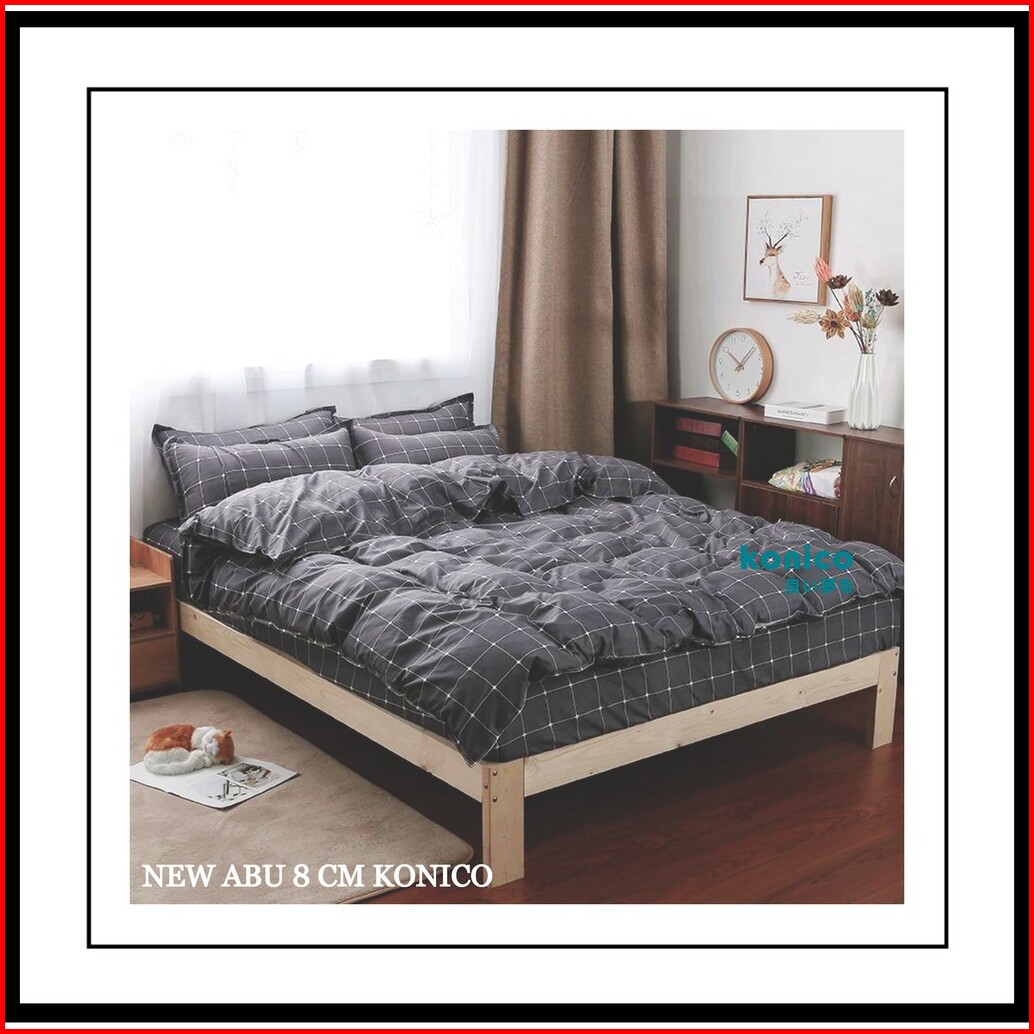 Konico Sprei Set Bahan Mikrotex Motif Kotak Hitam Putih Abu Biru 8 Cm Tanpa Bedcover