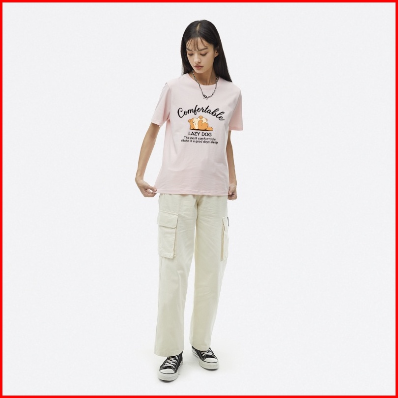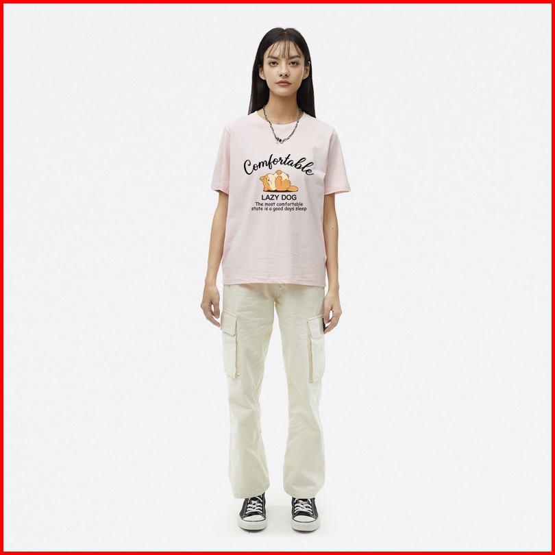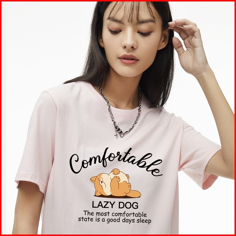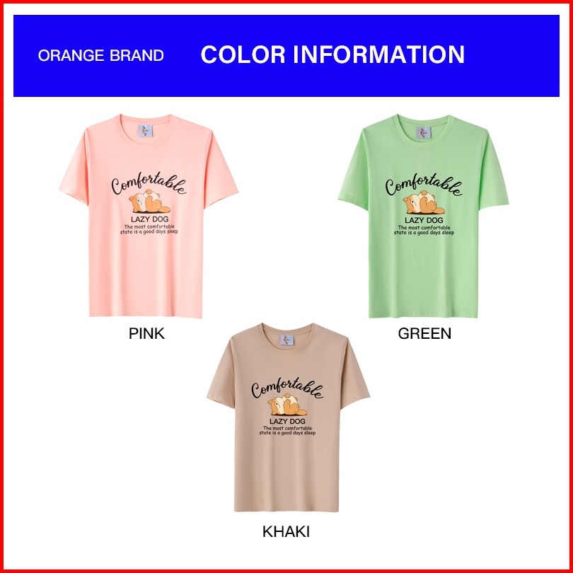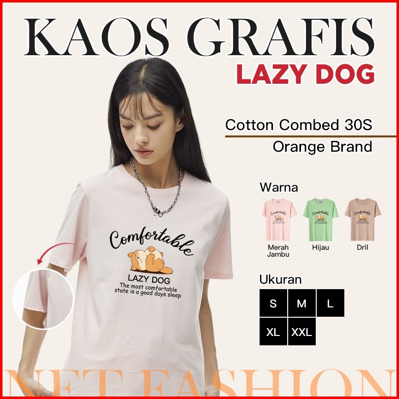 Orange Indonesia Baju Pendek Catton Combed 30s Wanita Motif Lazy Dog