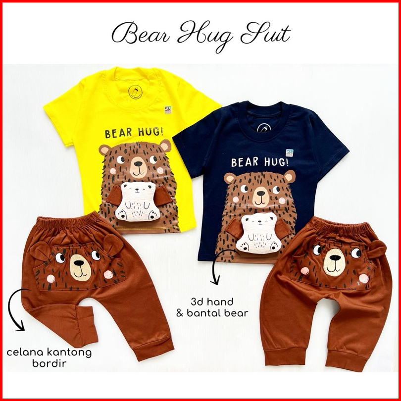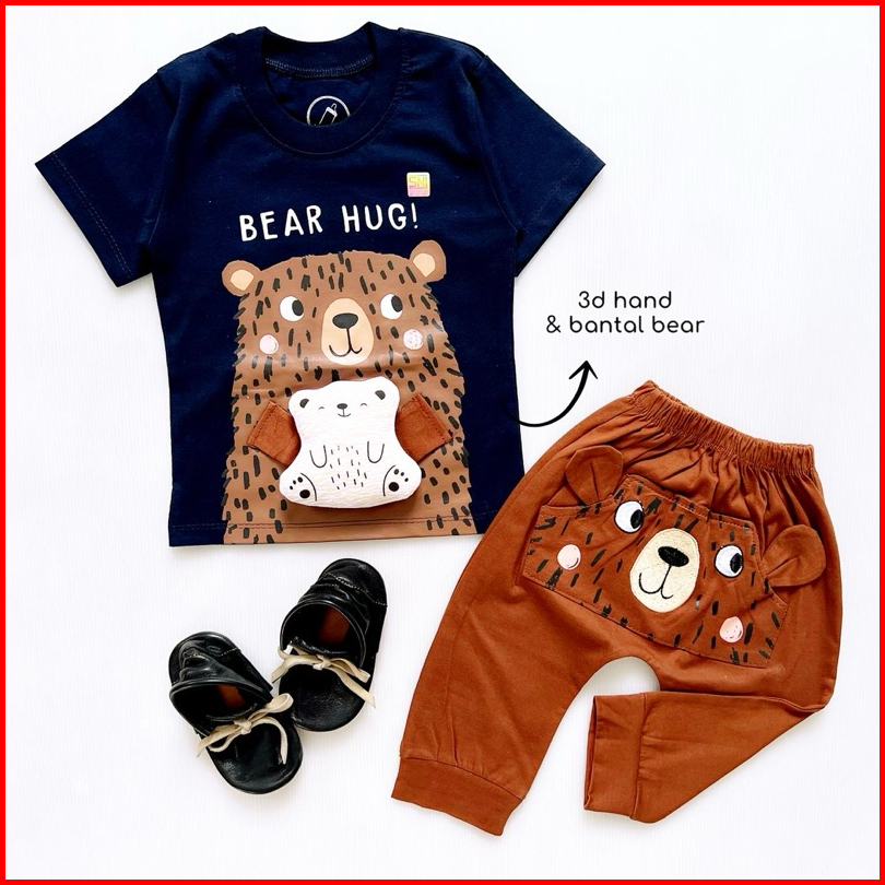 Suit Baju Setelan Kaos Celana Pergi Jalan Lucu Fashion Anak Bayi Cowok Laki Trumpet 3d Bear Hug Racoon Swimming Peek A B