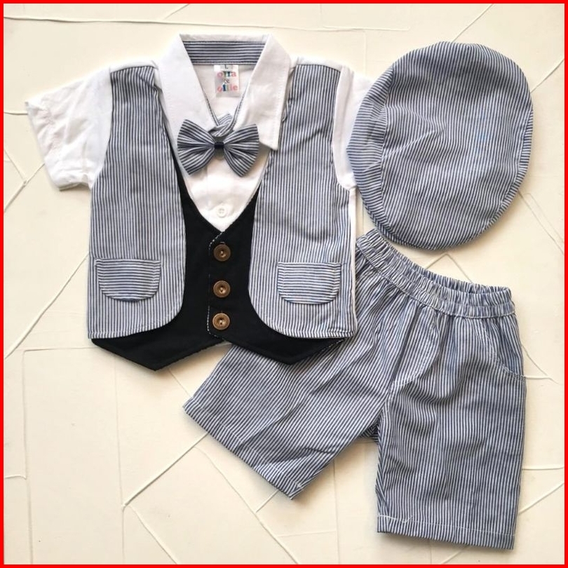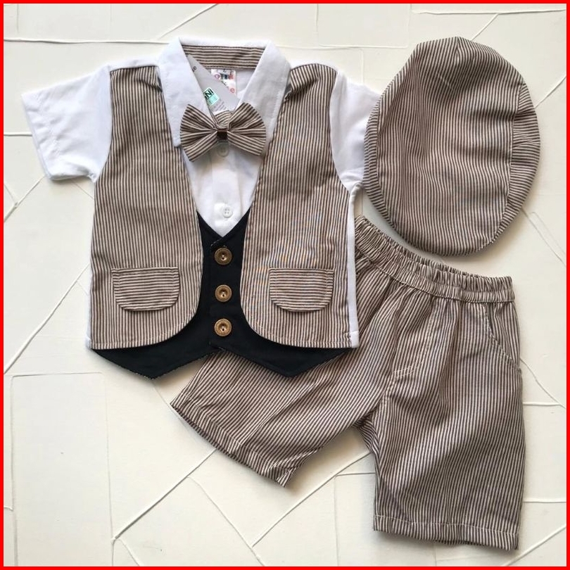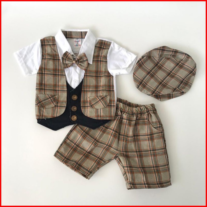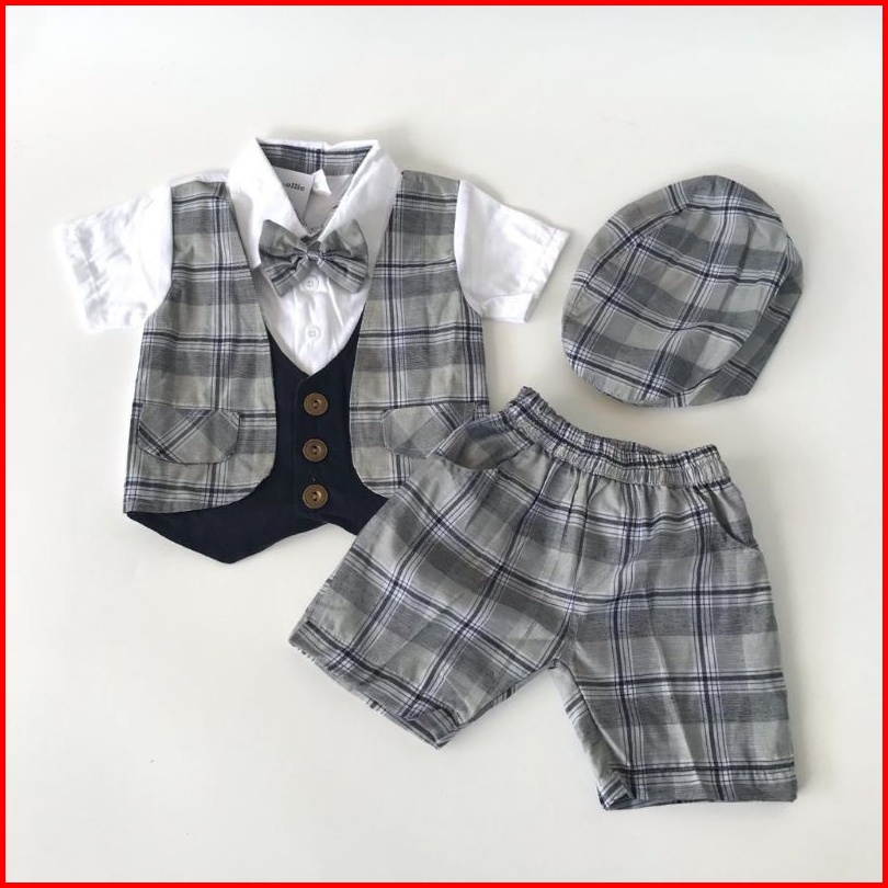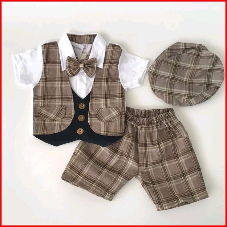 Baju Anak Bayi Laki Laki 3 12 Bulan Tuxedo Set Rompi Topi Dasi Kemeja Fashion Baby Boy Kotak
