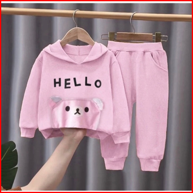 Trendy Setelan Hoodie Bayi Anak Perempuan Motif Barbie Best Seller Usia 6 Bulan-5 Tahun