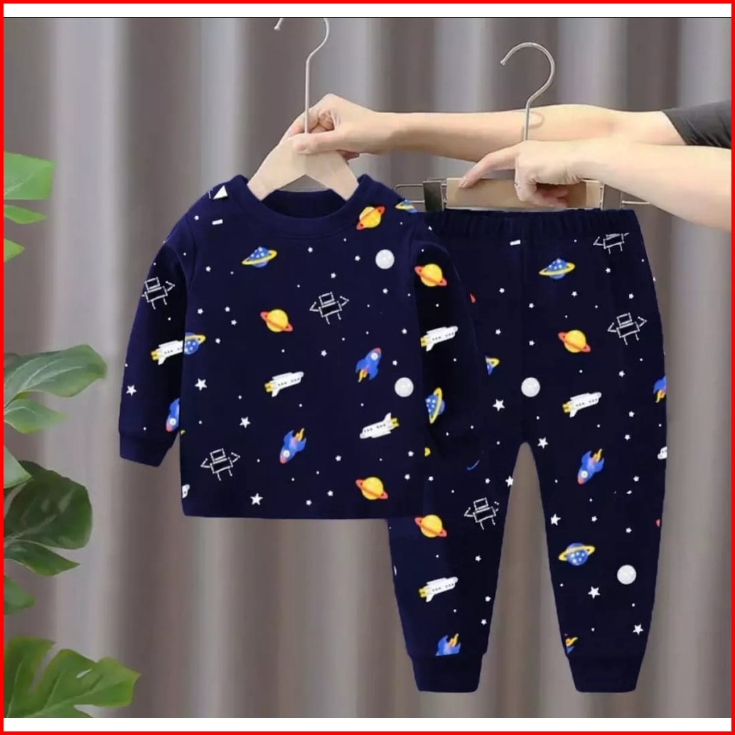 Setelan Baju Piyama Kaos Anak Bayi Motif Astronot Size 6 Bulan- 5 Tahun Bahan Katun Lembut Setelan Baju Piyama Kaos Anak