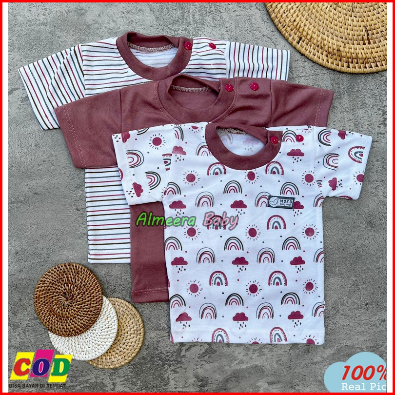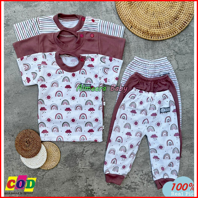 Isi 3 Setelan Baju Bayi Lengan Pendek Kancing Pundak Celana Diapers Panjang Series Dusty Pink Usia 0-18 Bulan Almeera Ba