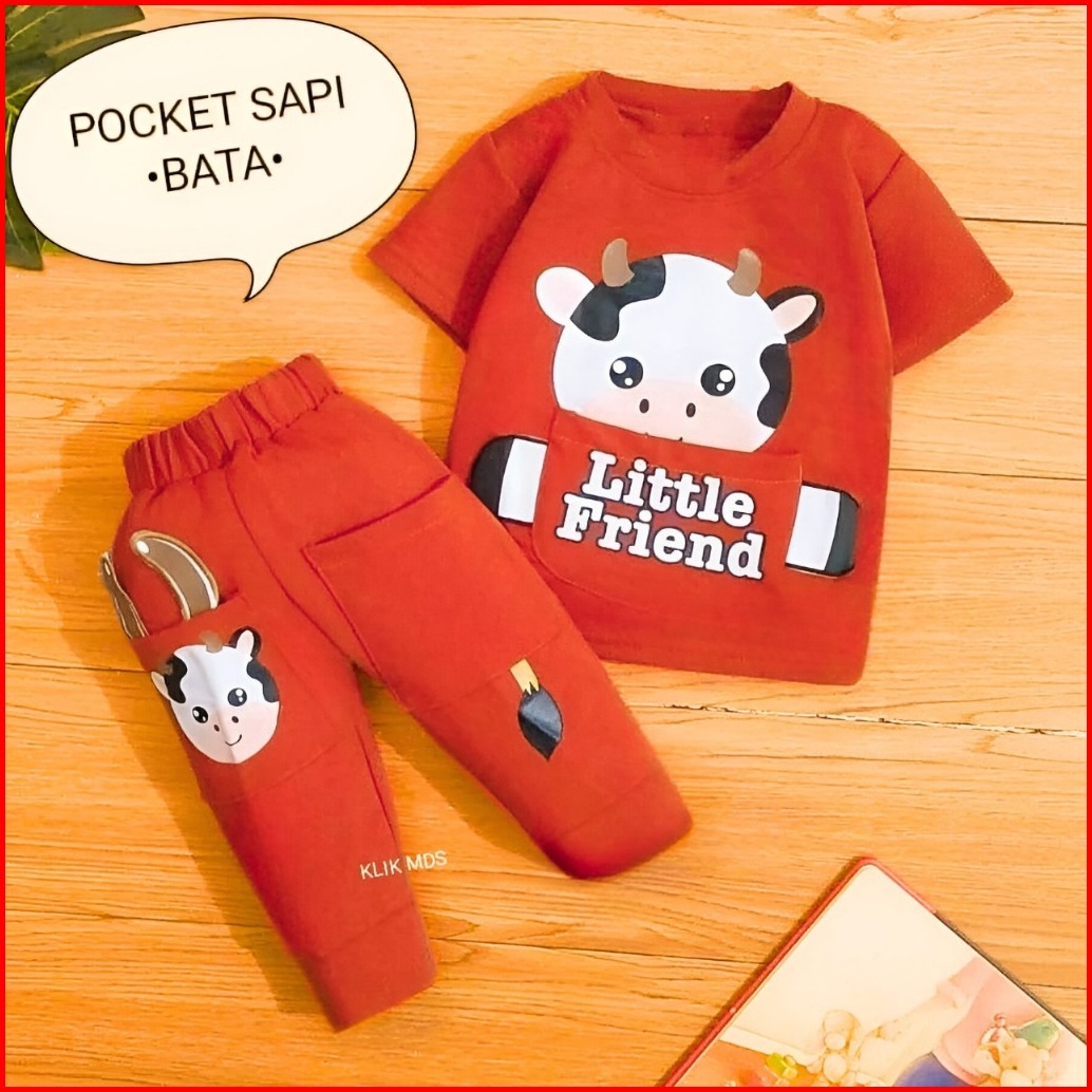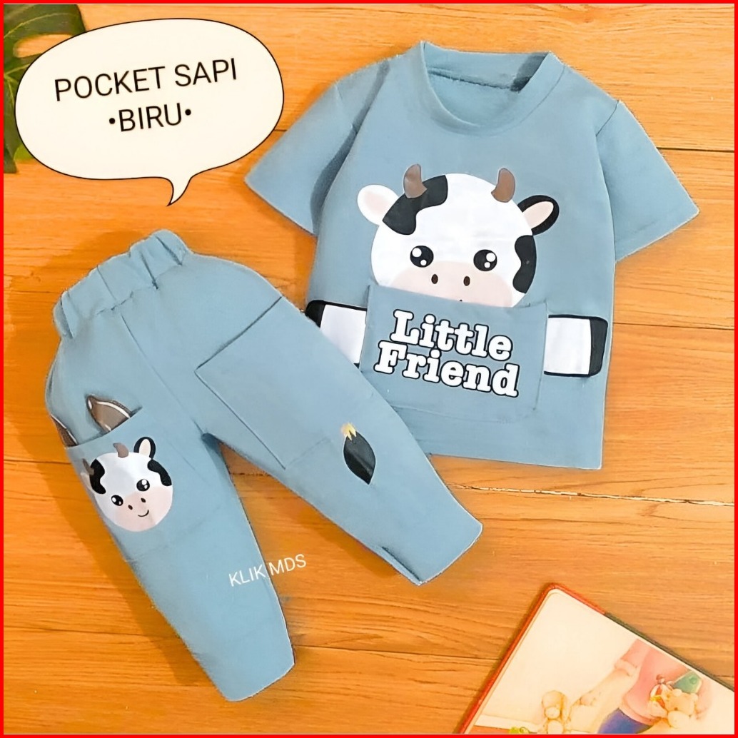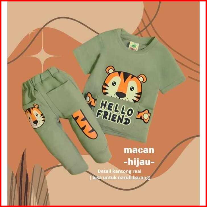 Setelan Anak Laki - Laki Baju Bayi Cowok Usia 3 Bulan - 3 Tahun Lengan Pendek Dan Celana Panjang Ada Kantong Motif Littl