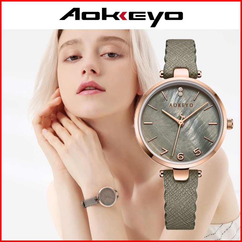 Aokeyo T88 Jam Tangan Wanita Anggun Mewah Roma Dial Tahan Air Kuarsa Tali Kulit Jam Tangan Cewek Free Box Kartu Garansi