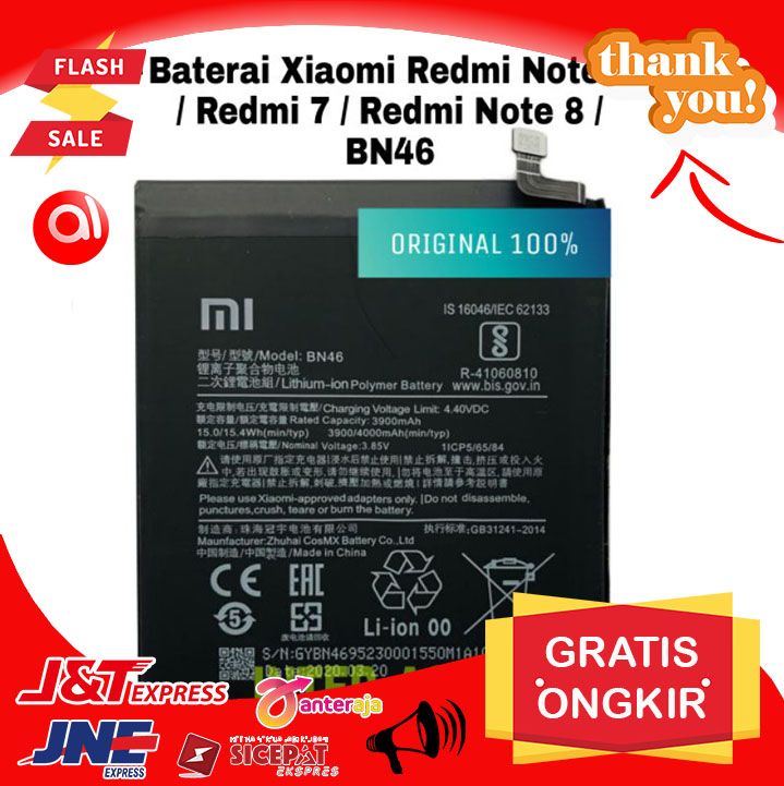 [Mall] BARU BATERAI ORIGINAL XIAOMI REDMI 7 REDMI NOTE 8 BN46 100% BATTERY BATRAI BATRE BN 46