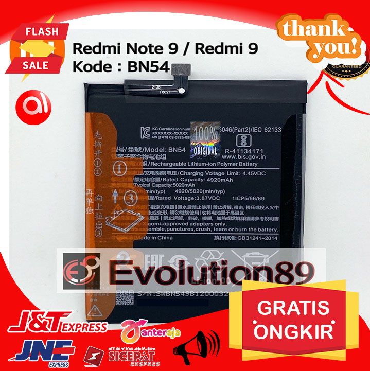 BARU BATERAI BATRE XIAOMI BN54 REDMI 9 BATERE BN 54 XIAOMI REDMI NOTE 9 ORI