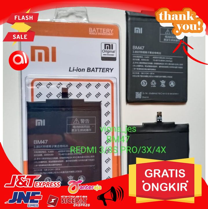 BARU BATERAI BATTERAI XIAOMI REDMI 3 / 3S / 3PRO / REDMI 4X TIPE BM47 ORIGINAL