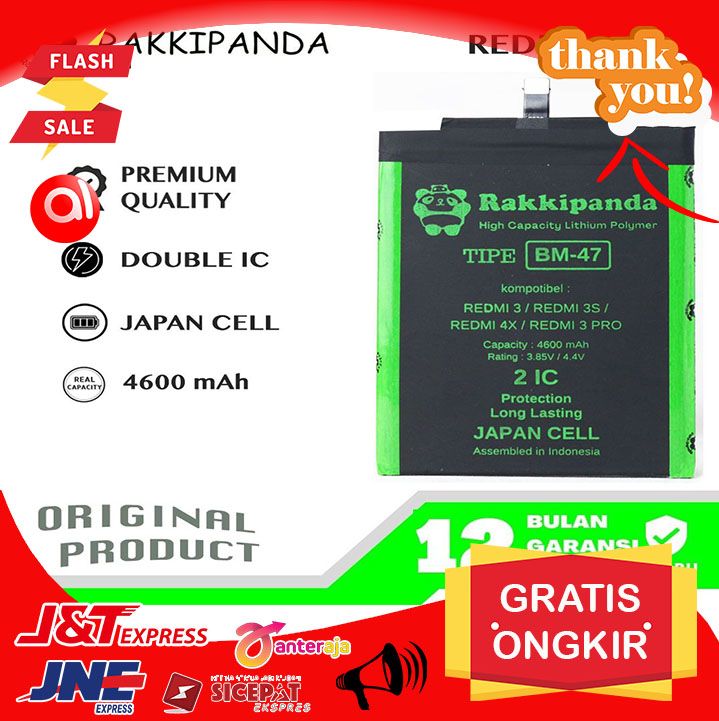 BARU RAKKIPANDA - BM47 REDMI 3/REDMI 3S/REDMI 3X/REDMI 4X/REDMI 3 PRO BATRE BATRAI BATERAI