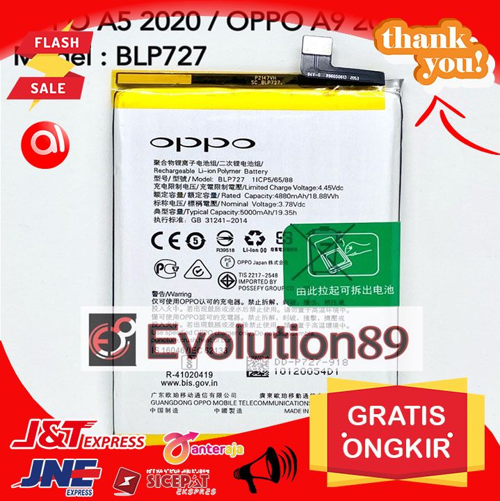 BARU BATERAI OP PO BLP727 / BLP 727 / BLP755 OP PO A5 2020 / A9 2020 ORIGINAL