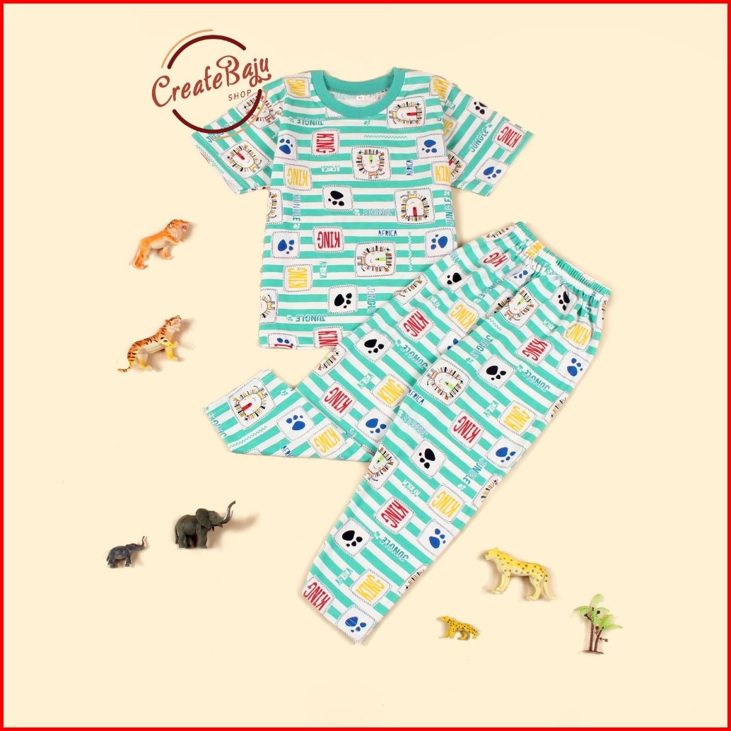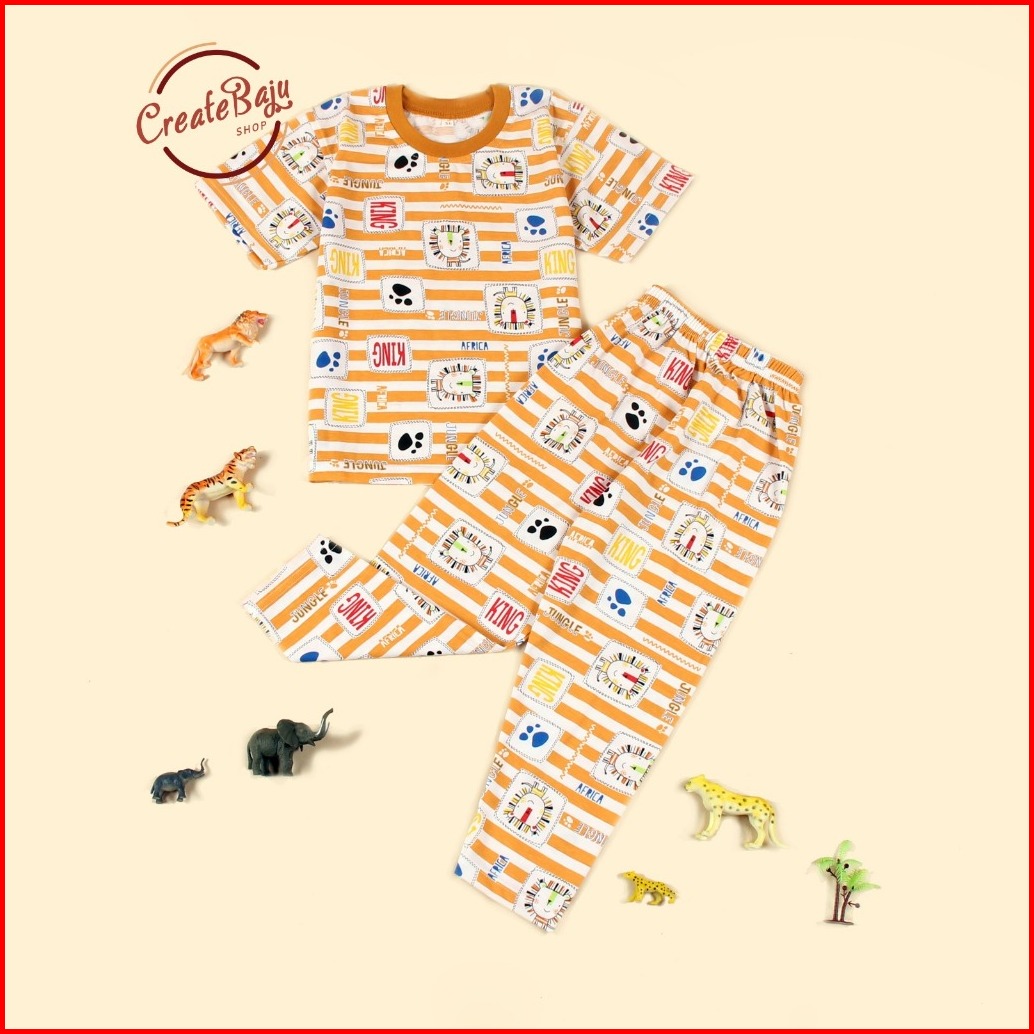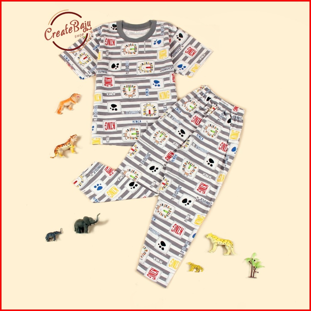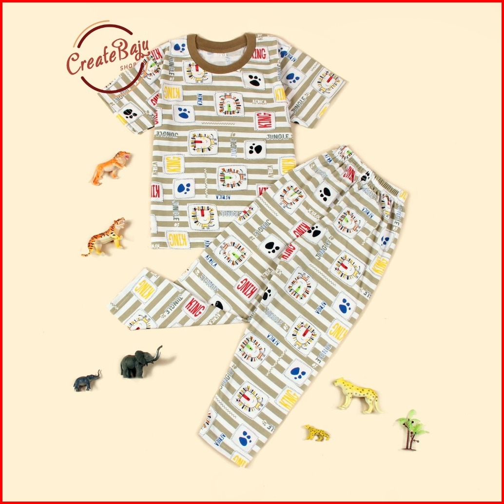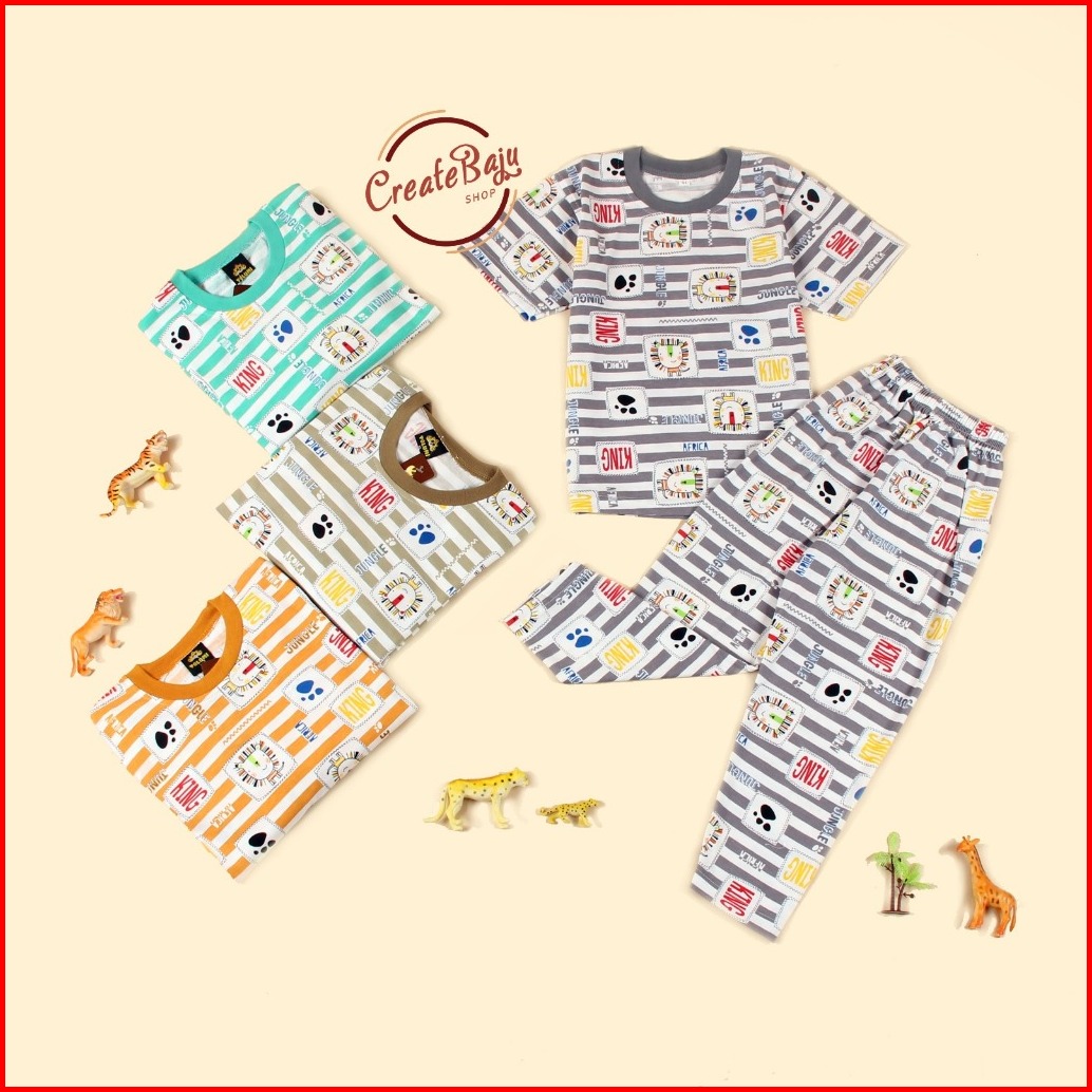 Cp Setelan Anak Laki 1-7 Tahun King Jungle Baju Tidur Anak Lengan Pendek Terlaris