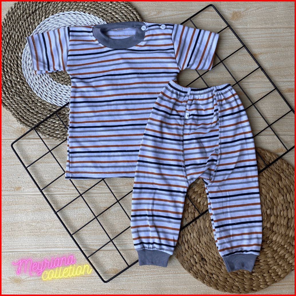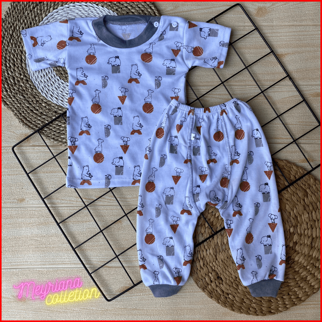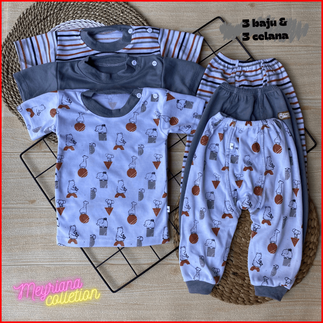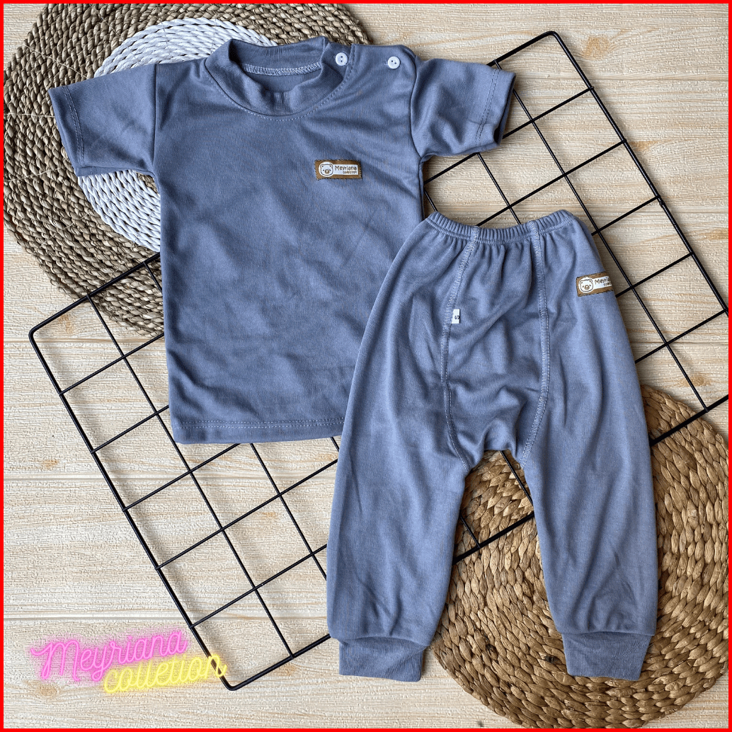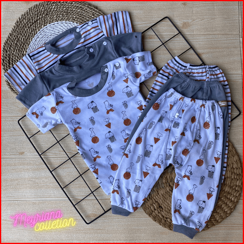 Promo Isi 6 Pcs Baju Bayi Lengan Pendek Celana Pempers Panjang Series Abu Usia 0-18 Bulan Meyriana Collection