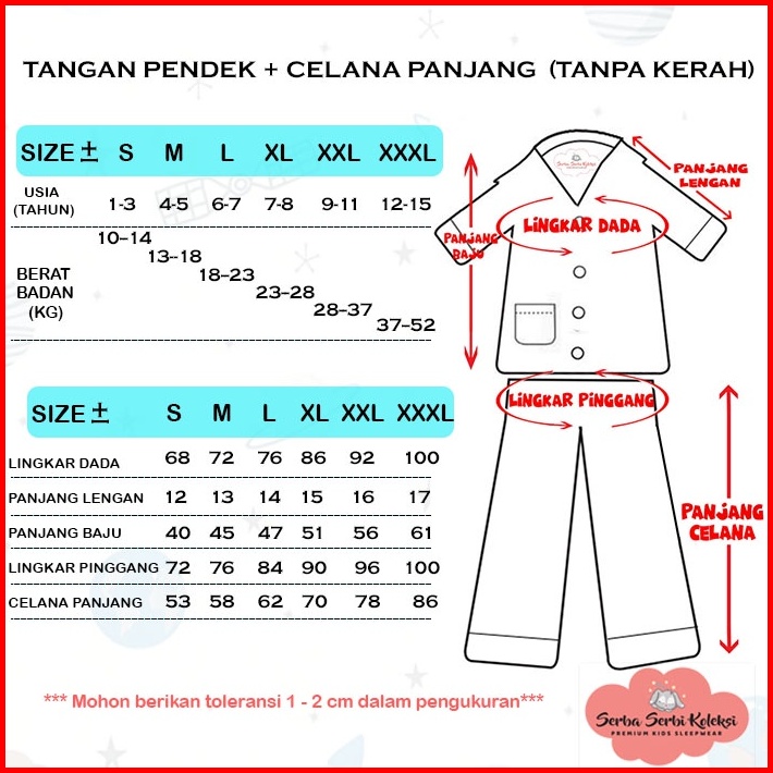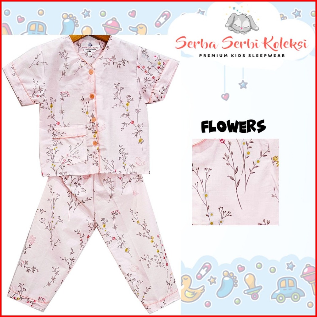 Piyama Anak Flowers Tanpa Kerah Katun Premium - T38