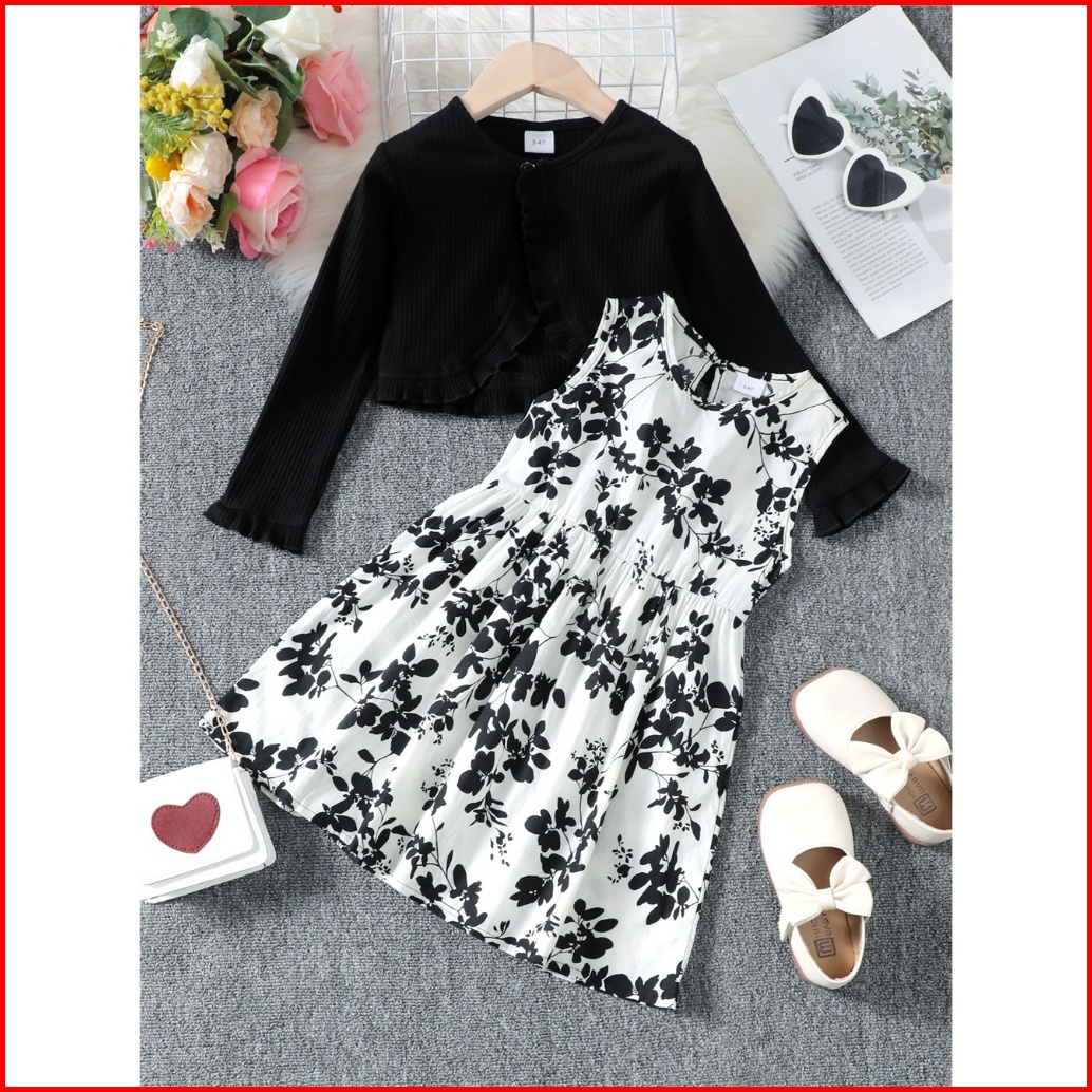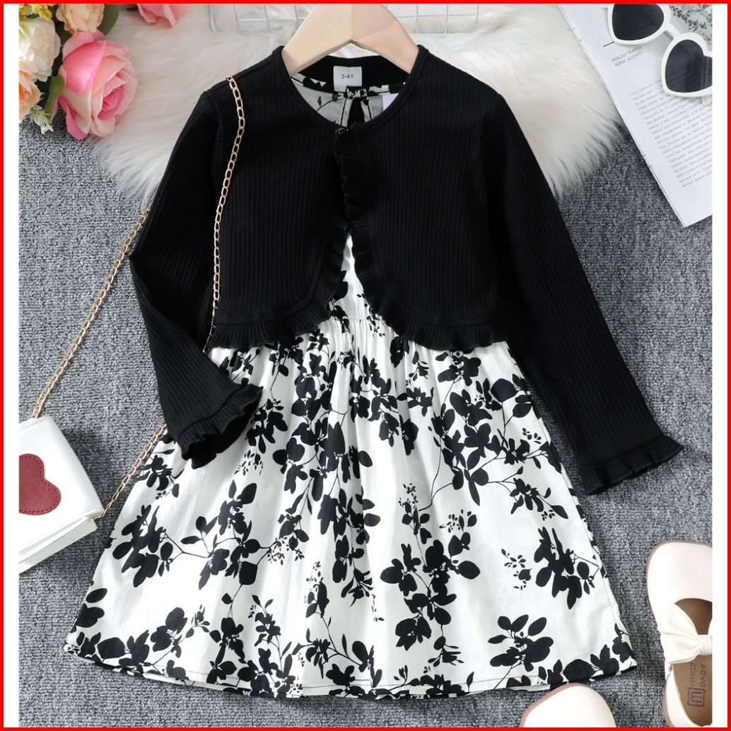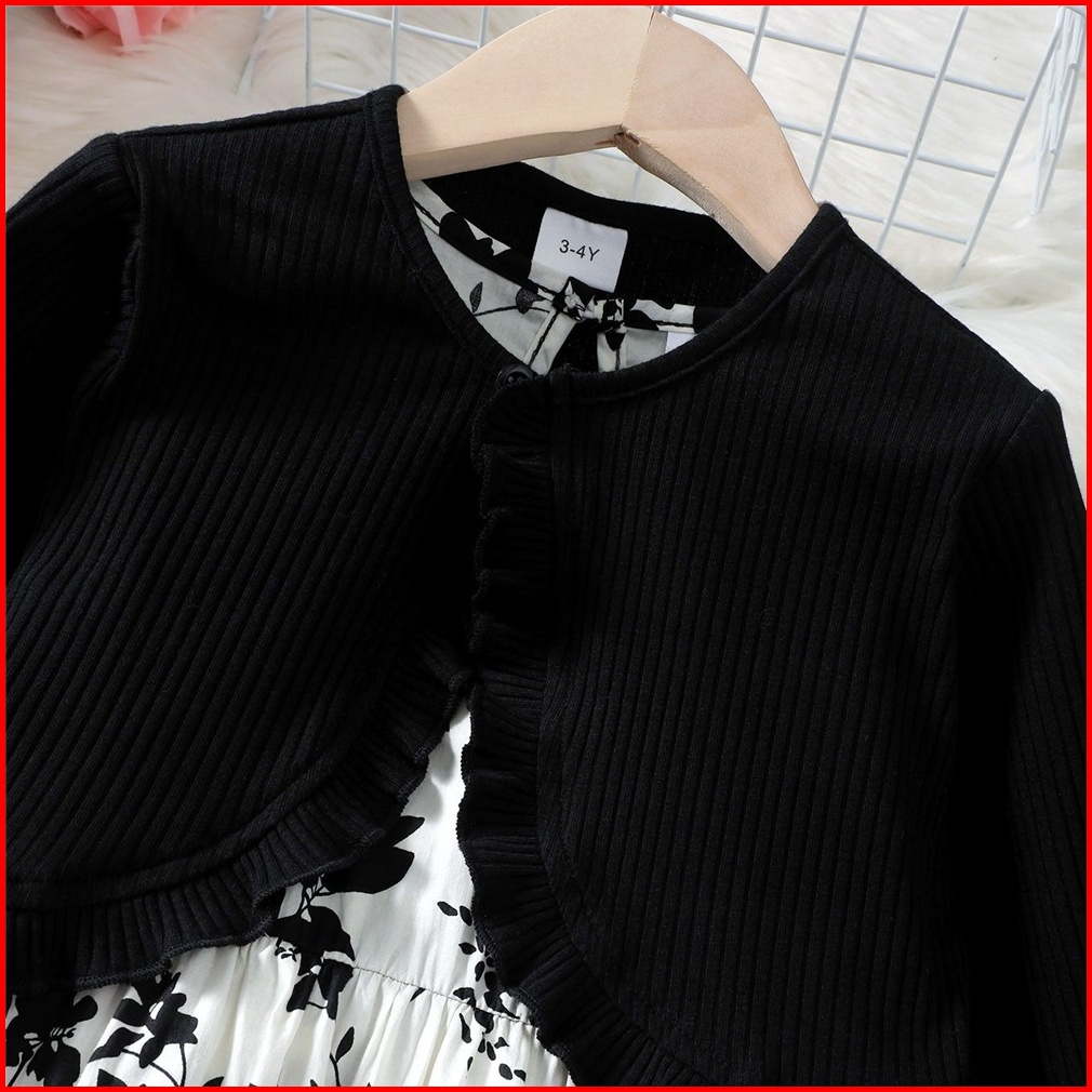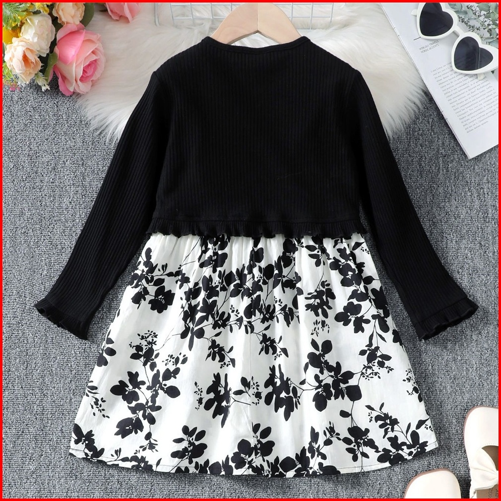 Baju Anak Perempuan Dress For Kids Girl 2-7 Years 2pcs Fashion Girl Princess Clothing Set Long Sleeves Solid T-shirt Flo