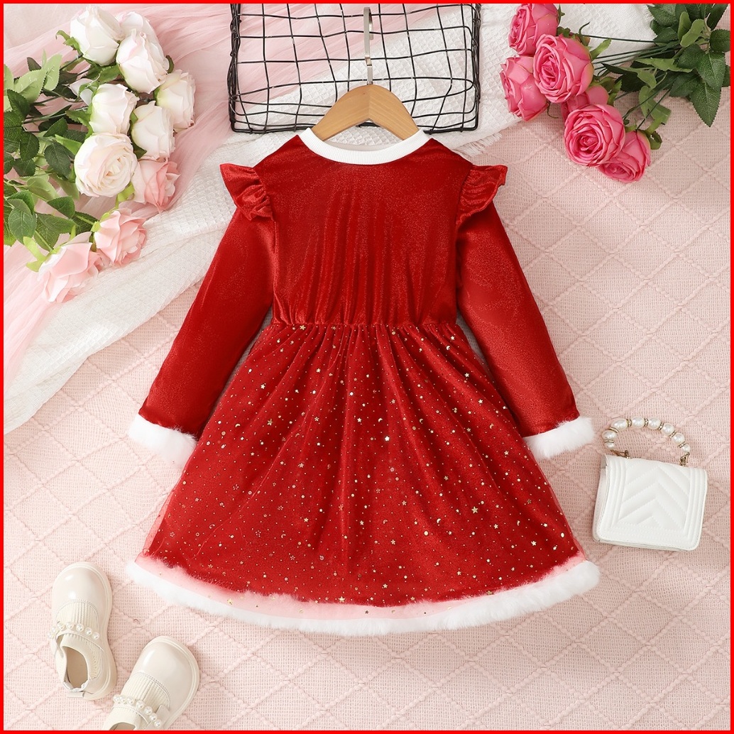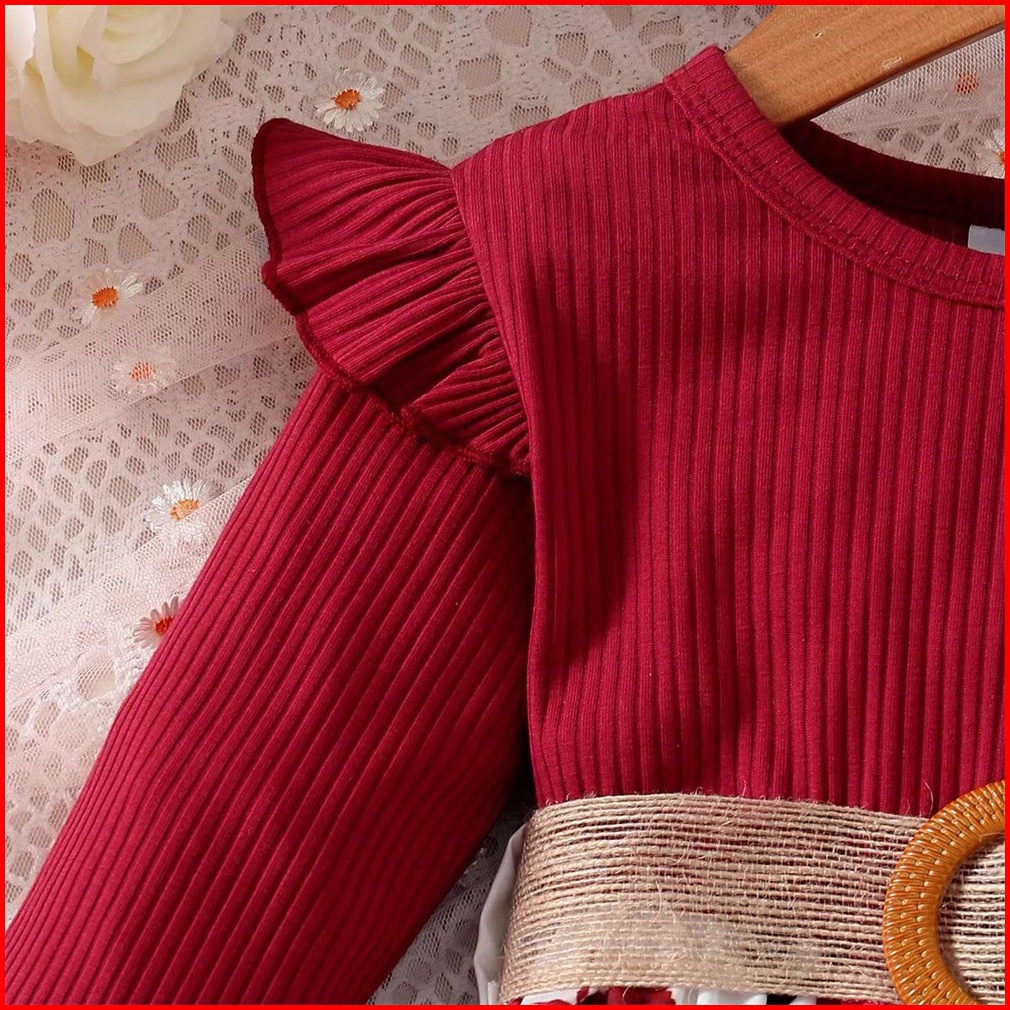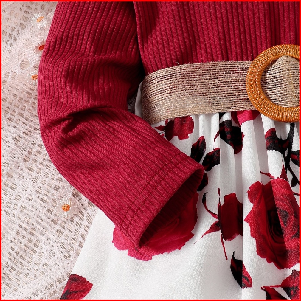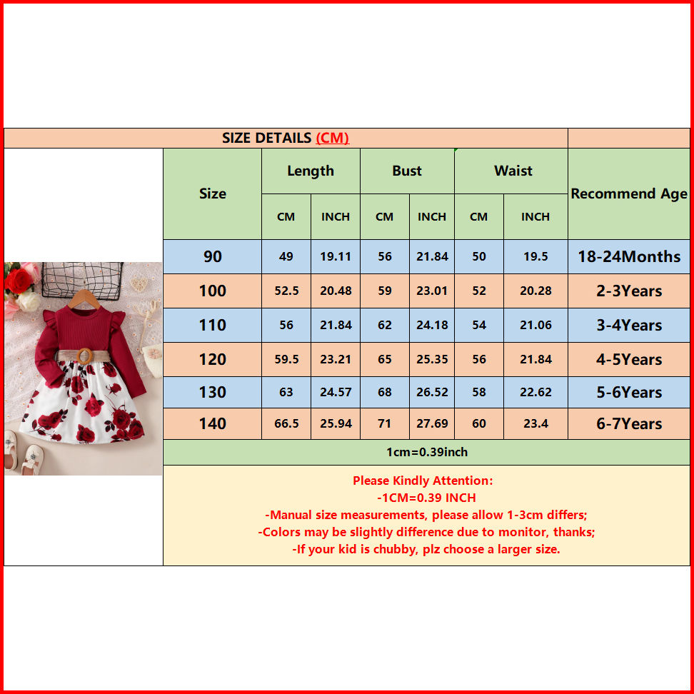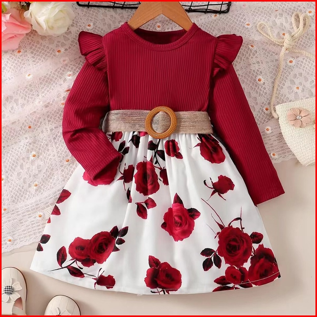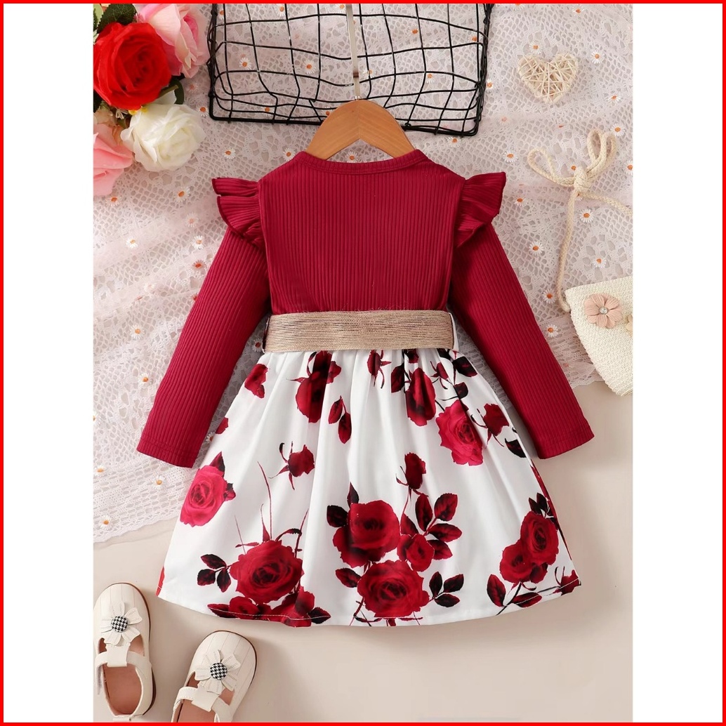 1-7y Kids Girl Fly Sleeve Floral Print Long Sleeve O-neck A-line Princess Dress Lovely Charming Baby Clothing