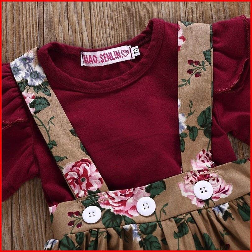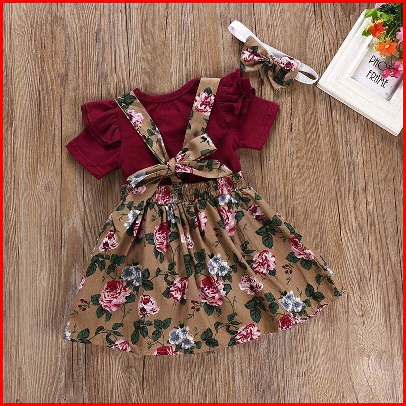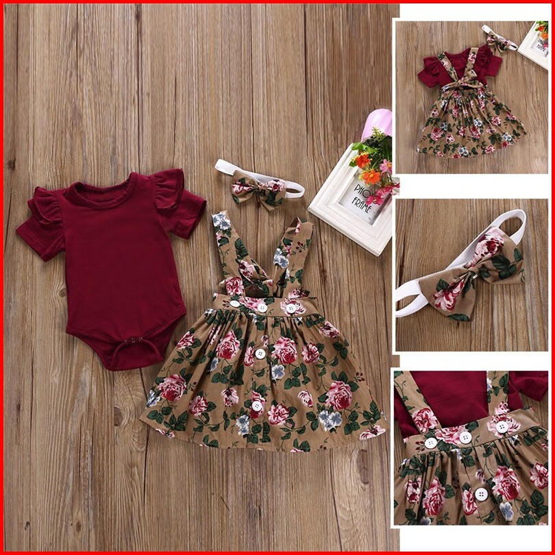 Rays Baby Dress Baju Anak 1 Tahun Baju Bayi Perempuan Set Baju Rok Motif Bunga Merah