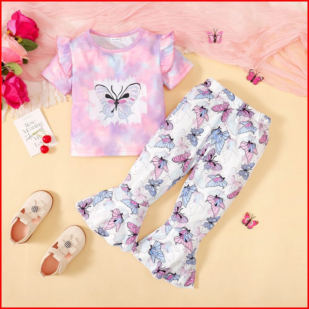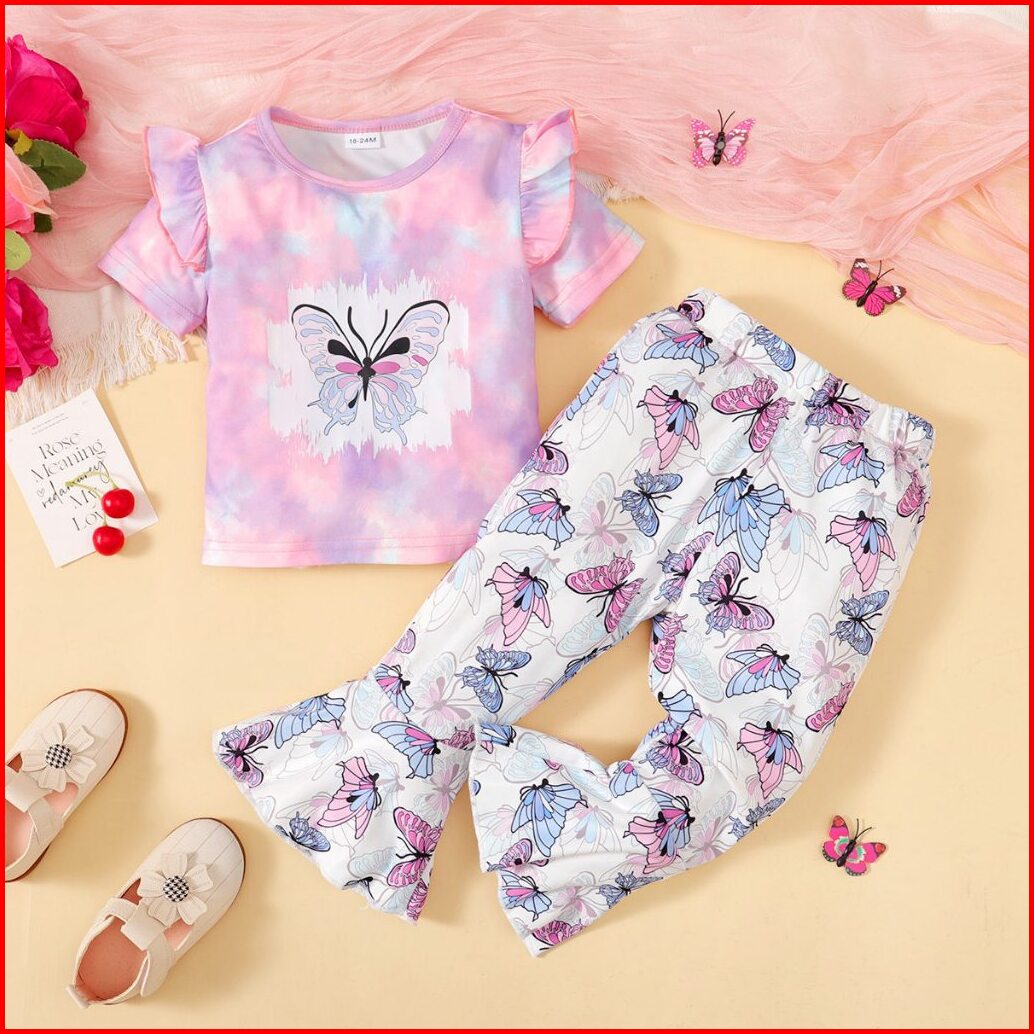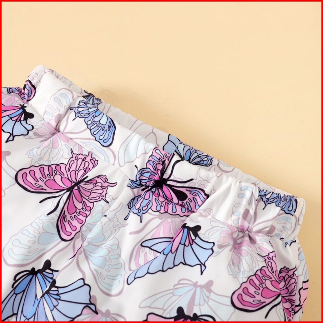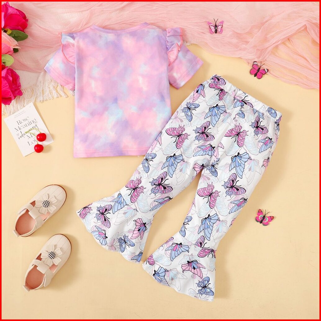 1-6years Kids Baby Girl Daily Clothes Set Butterflies Print Short Sleeve Top Pant Summer Lovely 2pcs Outfit
