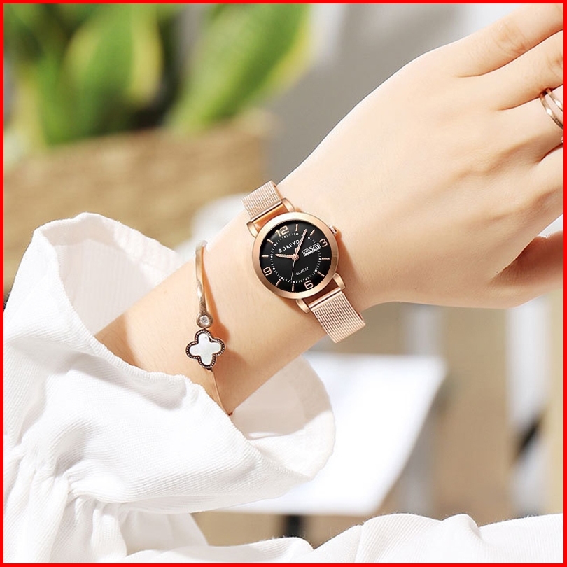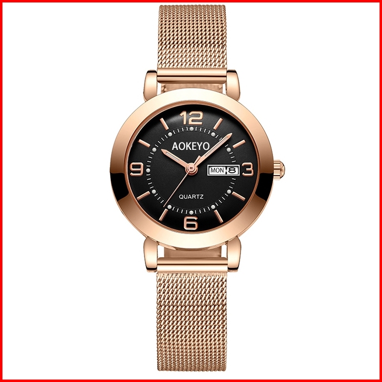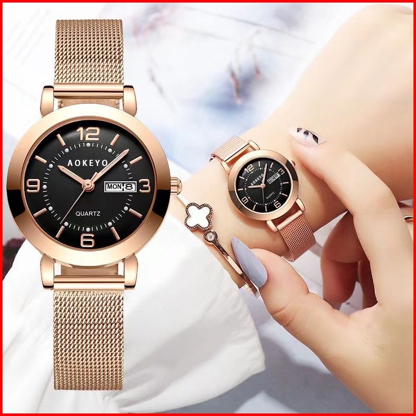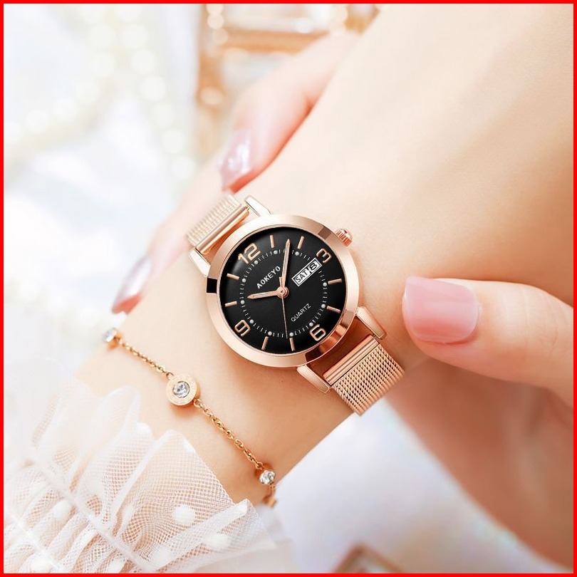 Aokeyo S027 Jam Tangan Wanita Original Tahan Air Quartz Santai Mode Tali Kulit Otomatis Date Jam Tangan Cewek Kecilfree